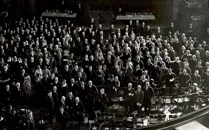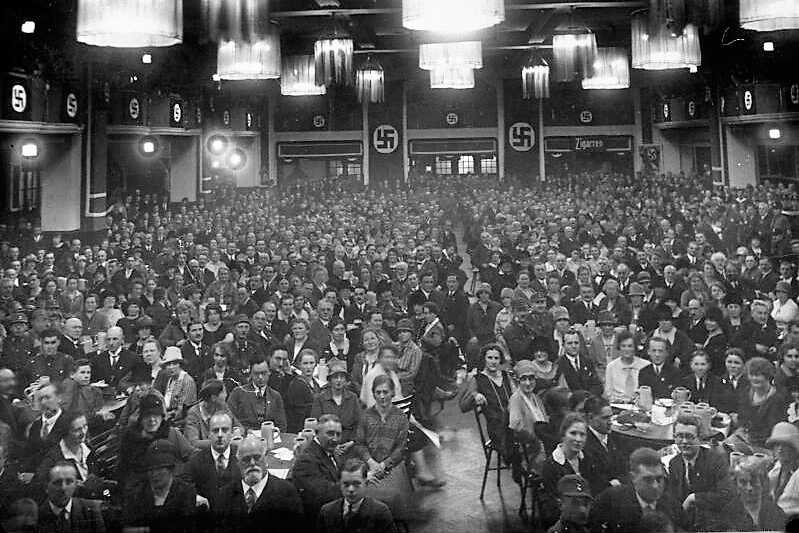 Vor der Hitler-Rede: NSDAP-Versammlung im Münchener Bürgerbräukeller (Bundesarchiv Berlin: Bild 146-1978-004-12A / Hoffmann, Heinrich - ca. 1923)