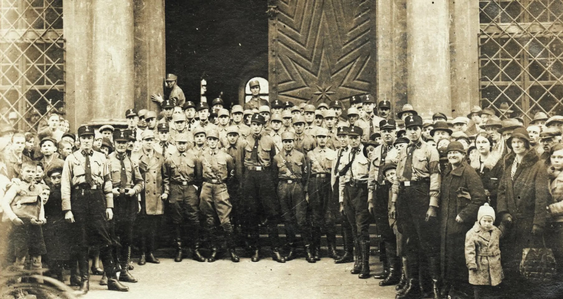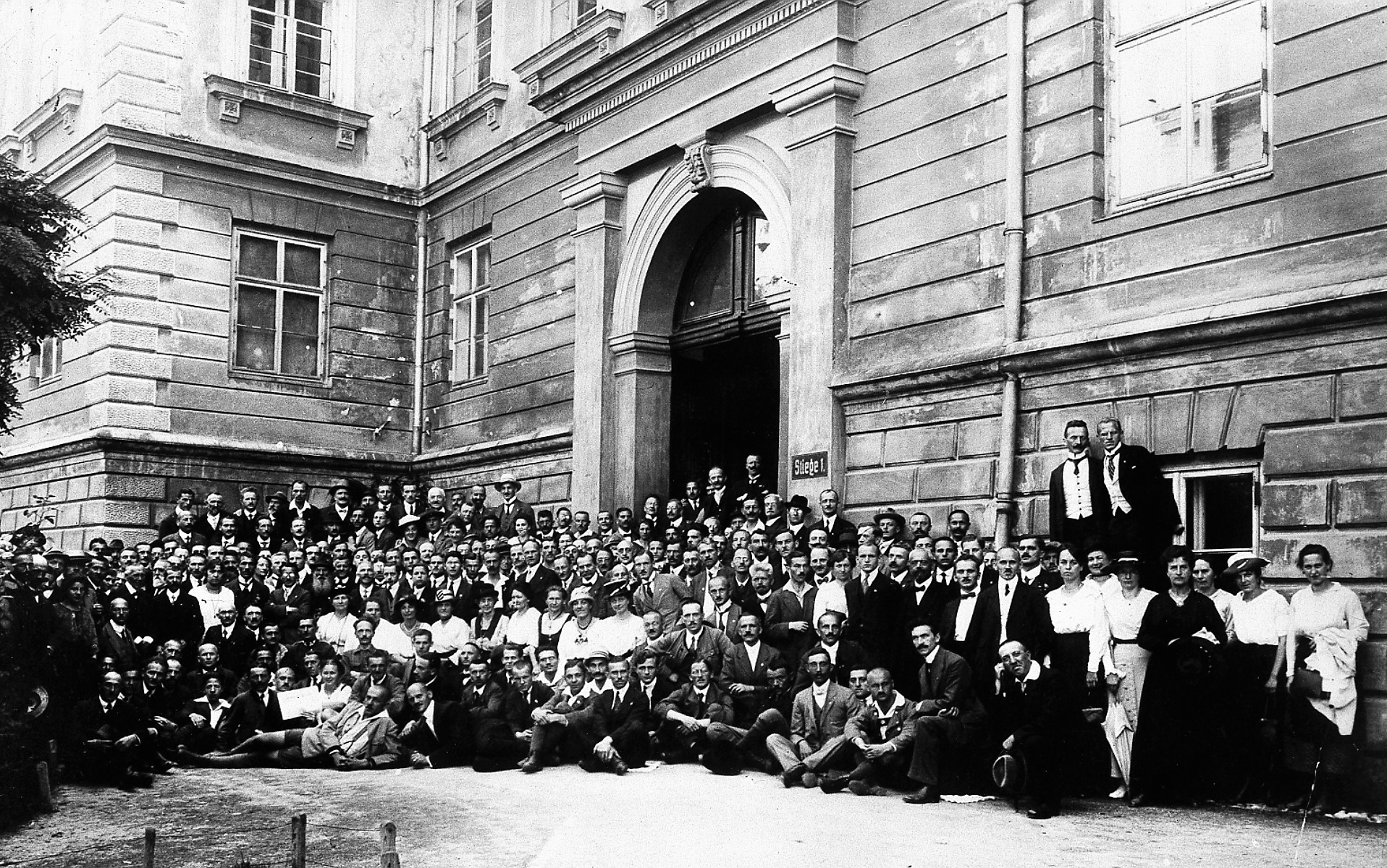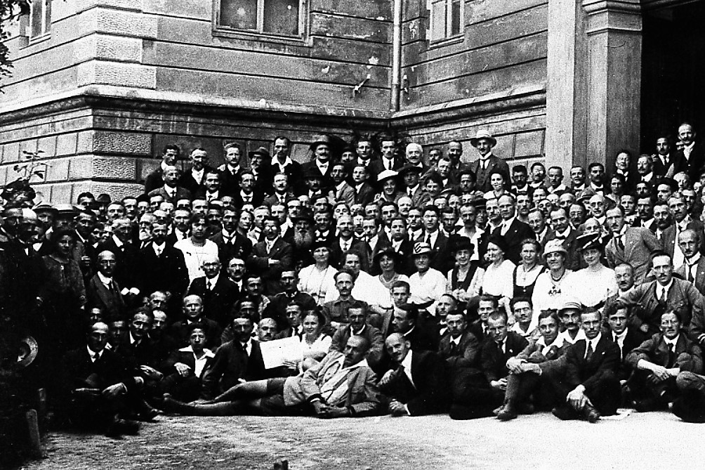 Gruppenbild mit Hitler: Tagung völkischer Gruppierungen in Salzburg - 8. August 1920 (Bay. Staatsbibliothek: hoff-6512 / Hoffmann, Heinrich)