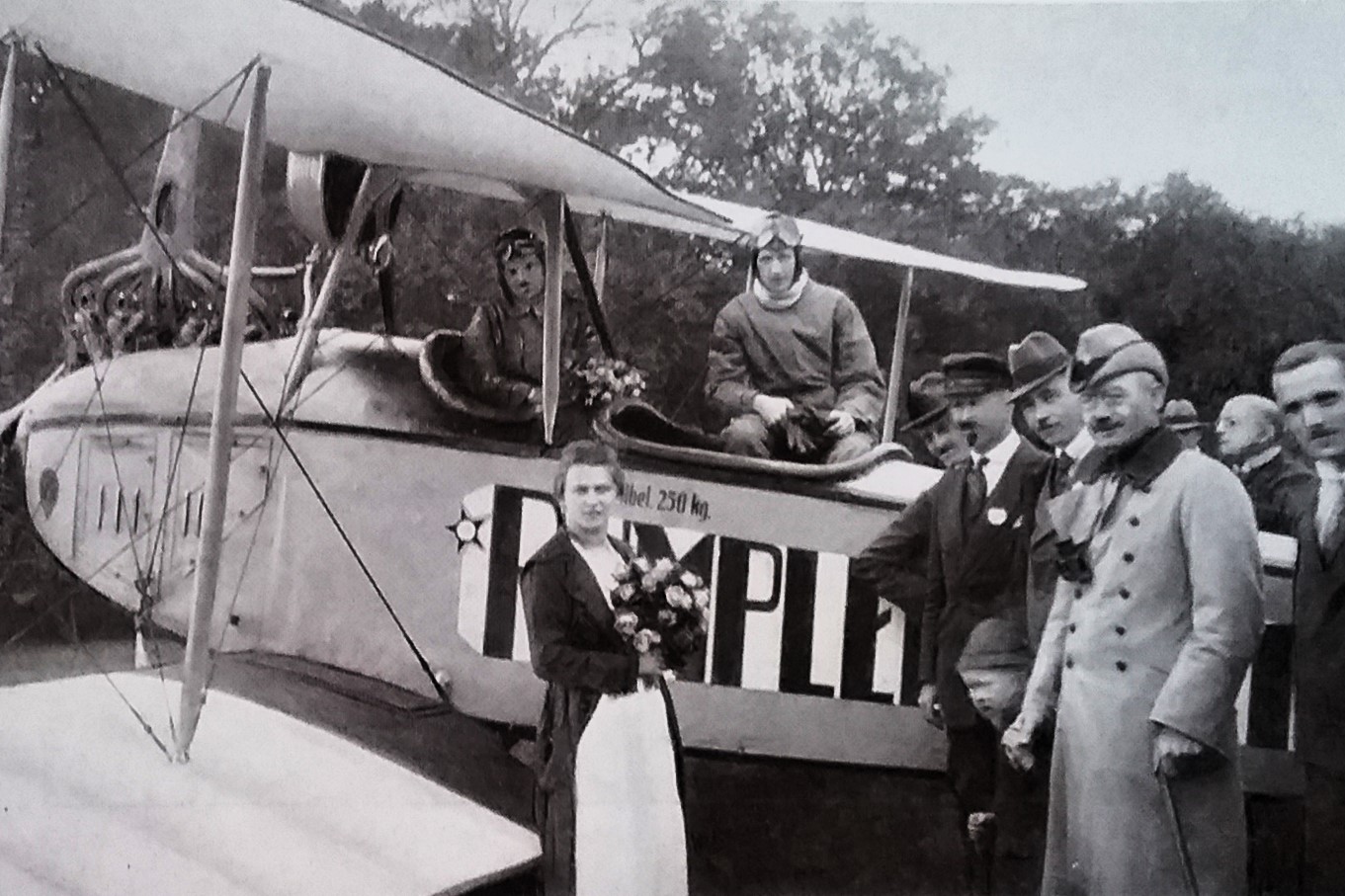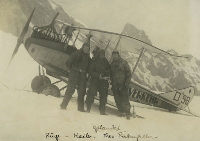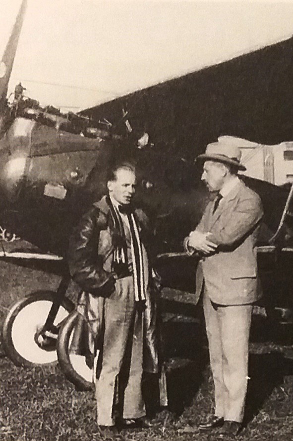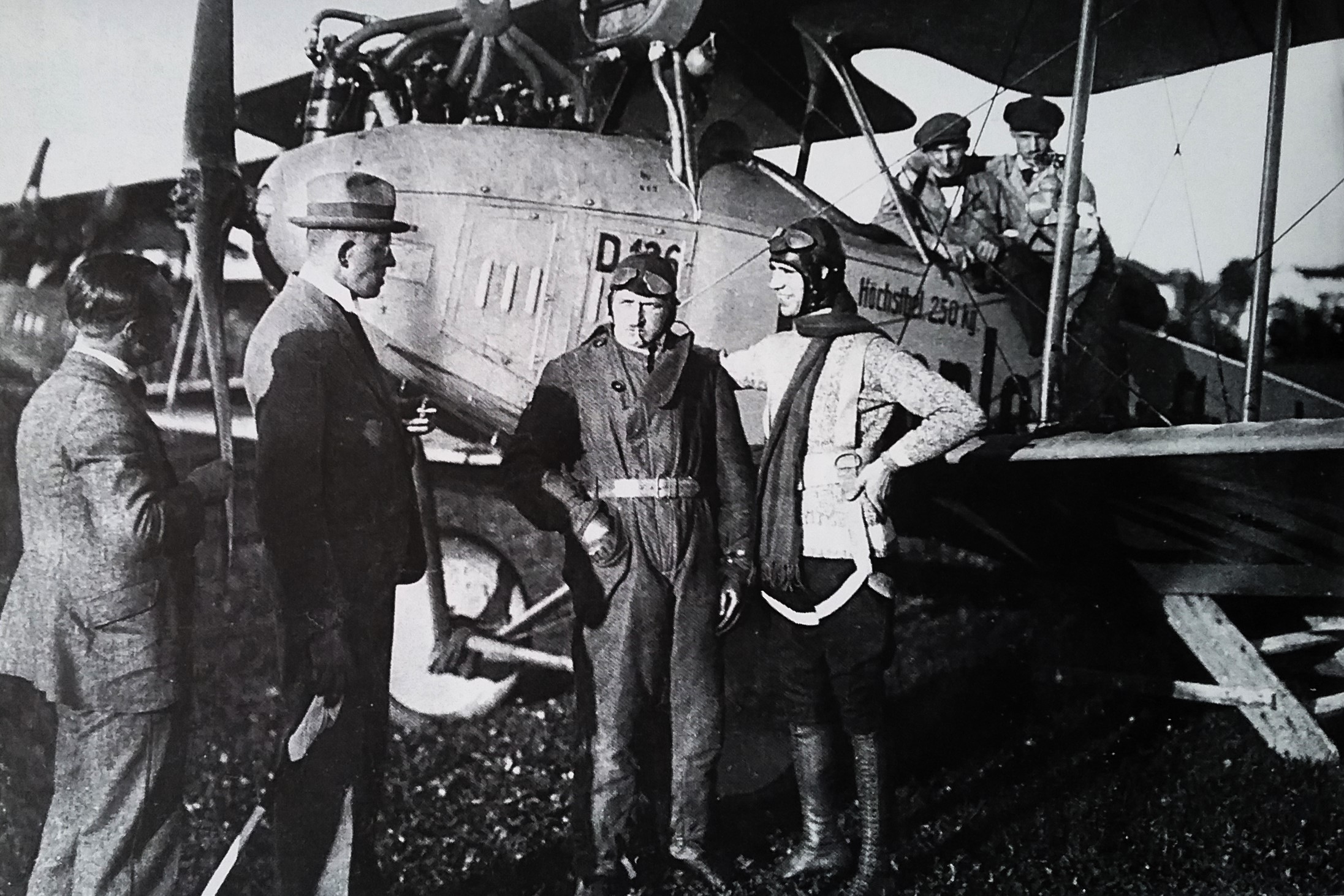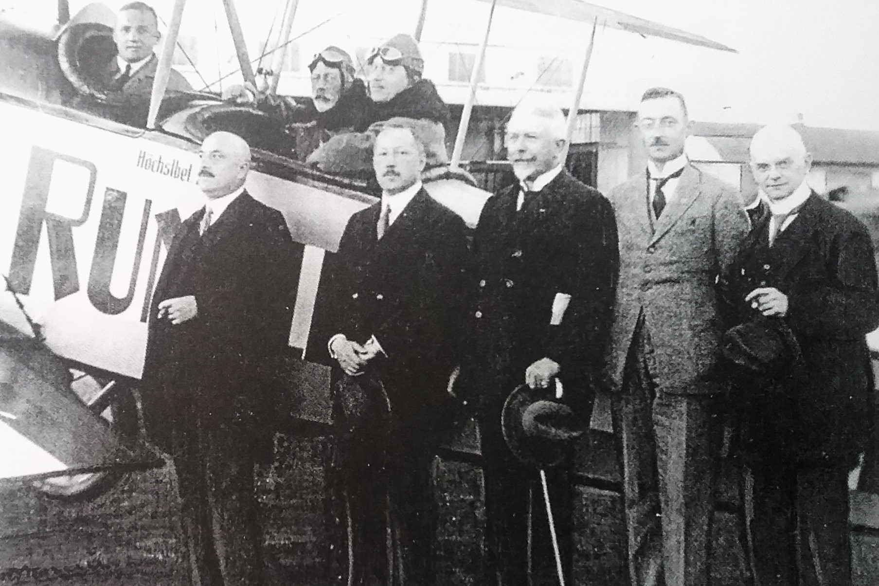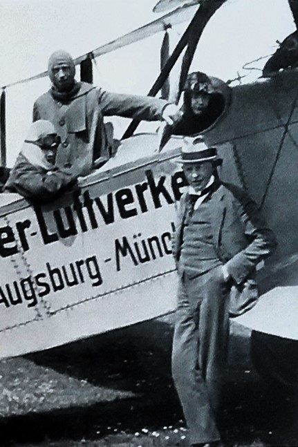 Elektrifizierung durch Wasserkraft: Ru C I-Flugkapitän Adolf Doldi mit Ministerpräsident Dr. Gustav v. Kahr (l) und Geh. Baurat Dr. Oskar v. Miller (r) vor dem Flug zum Walchensee-Kraftwerk - Flugfeld Oberschleissheim 6. Juni 1921 (Fotografie im Privatbesitz / Fischer, Heinrich - München + (Kranzhoff: "Edmund Rumpler - Wegbereiter der industriellen Flugzeugfertigung", S.340 - 2004)+ bridgemanimages.com. Zu Adolf Doldi: Später Lufthansa-Pilot und SS-Obersturmbannführer, SS-Nr. 276.881, am 21.8.1944 abgeschossen)