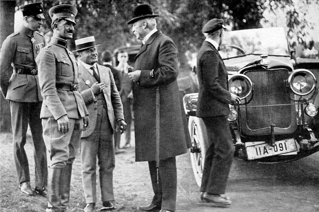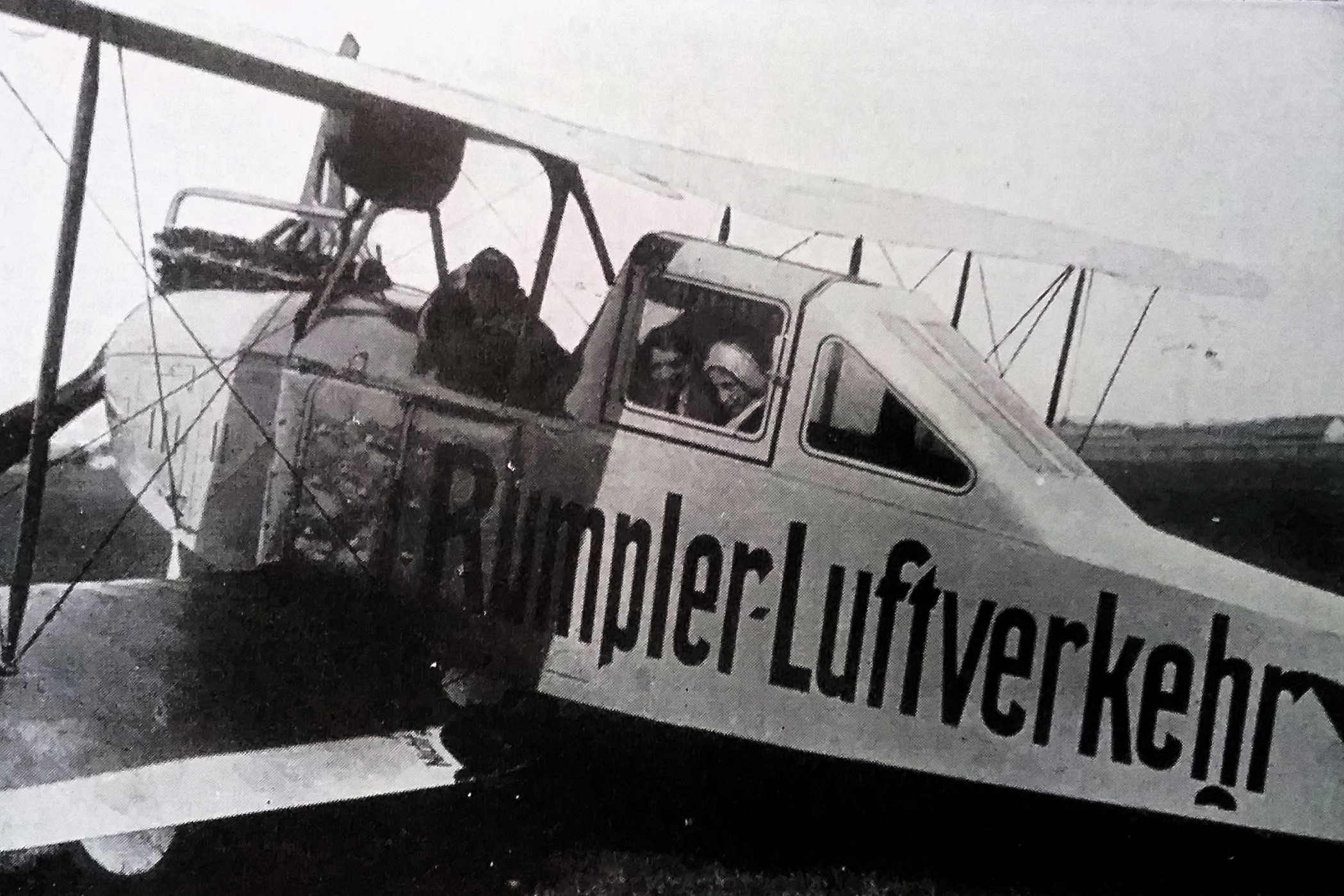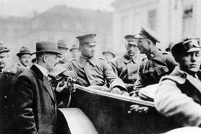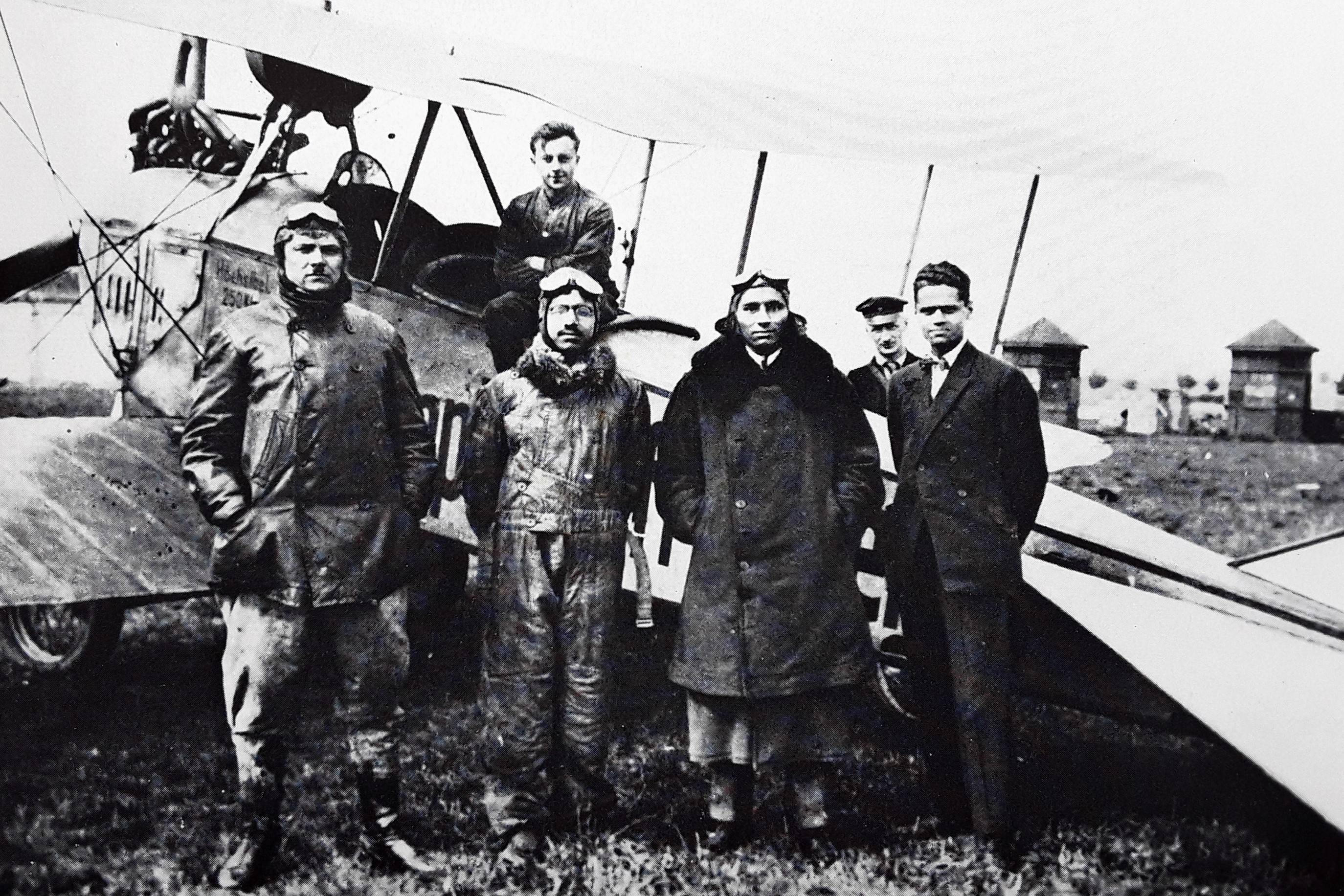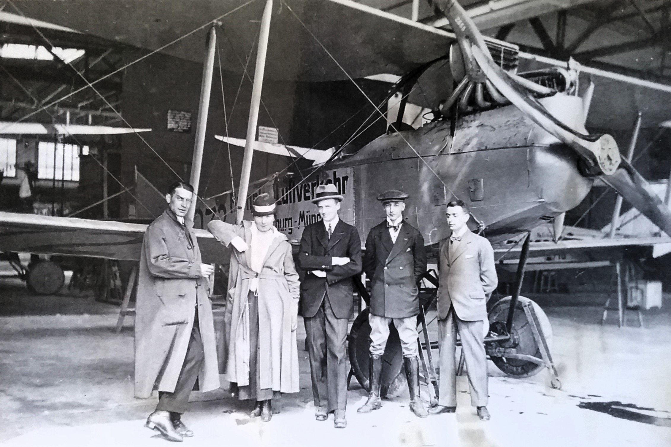 Elektrifizierung durch Wasserkraft: Ru C I-Flugkapitän Adolf Doldi mit Ministerpräsident Dr. Gustav v. Kahr (l) und Geh. Baurat Dr. Oskar v. Miller (r) vor dem Flug zum Walchensee-Kraftwerk - Flugfeld Oberschleissheim 6. Juni 1921 (Fotografie im Privatbesitz / Fischer, Heinrich - München + (Kranzhoff: "Edmund Rumpler - Wegbereiter der industriellen Flugzeugfertigung", S.340 - 2004)+ bridgemanimages.com. Zu Adolf Doldi: Später Lufthansa-Pilot und SS-Obersturmbannführer, SS-Nr. 276.881, am 21.8.1944 abgeschossen)