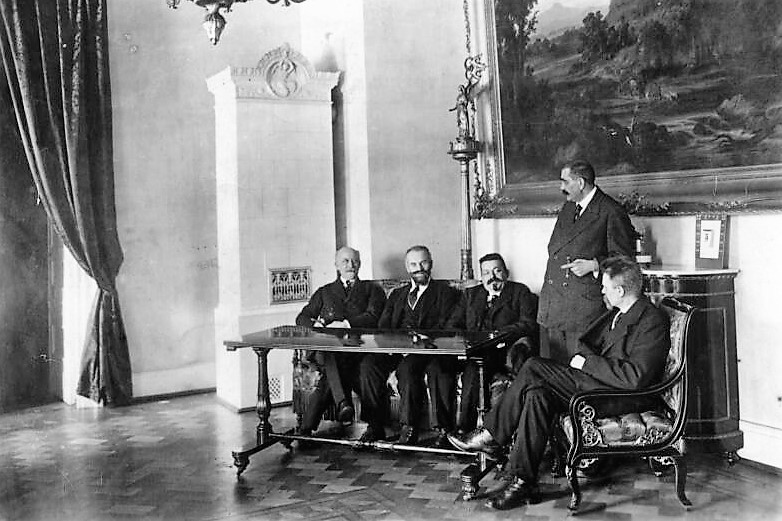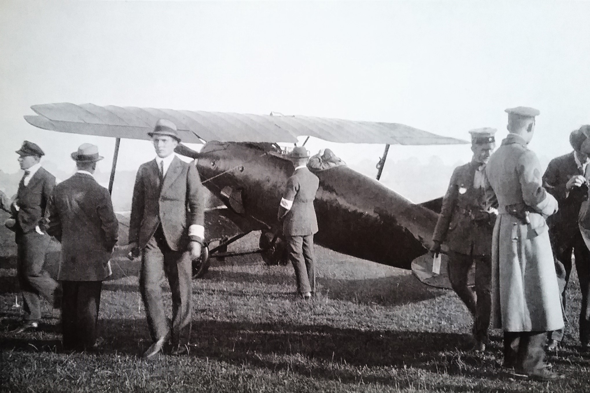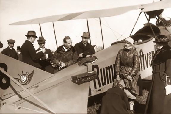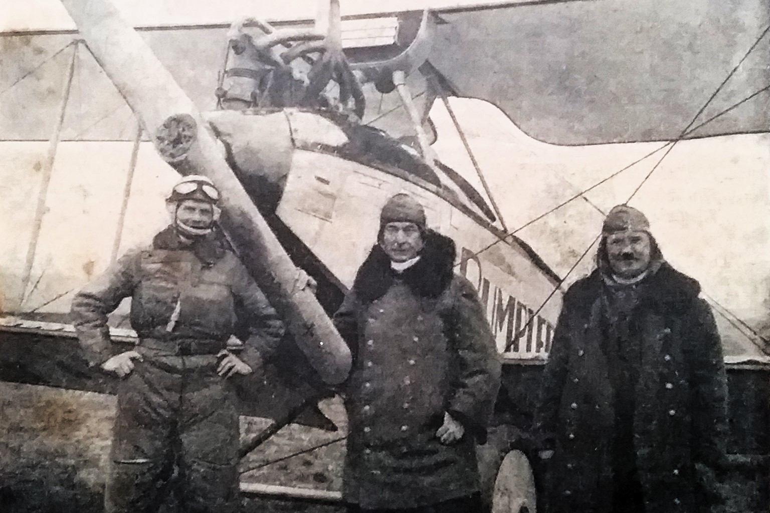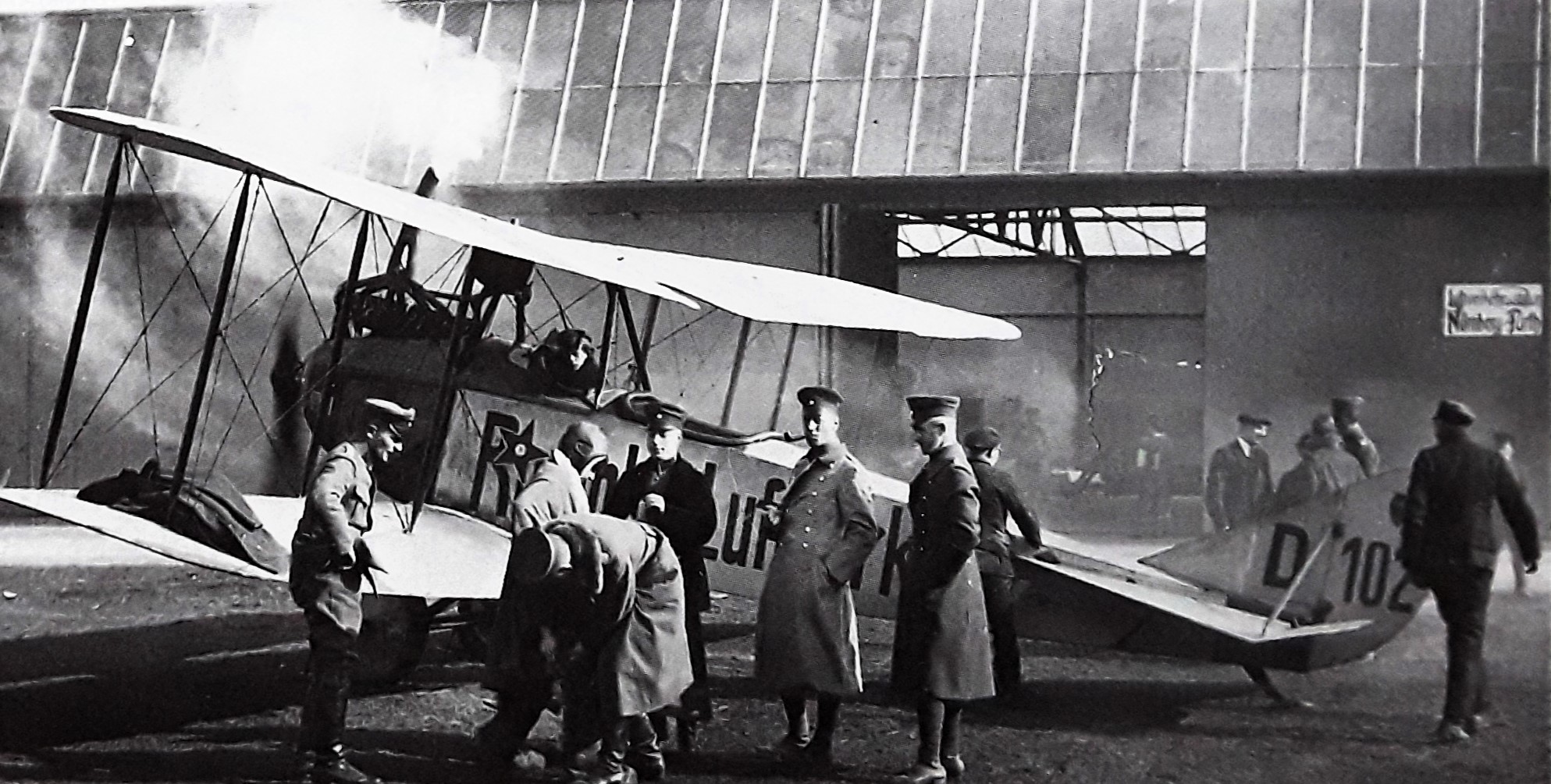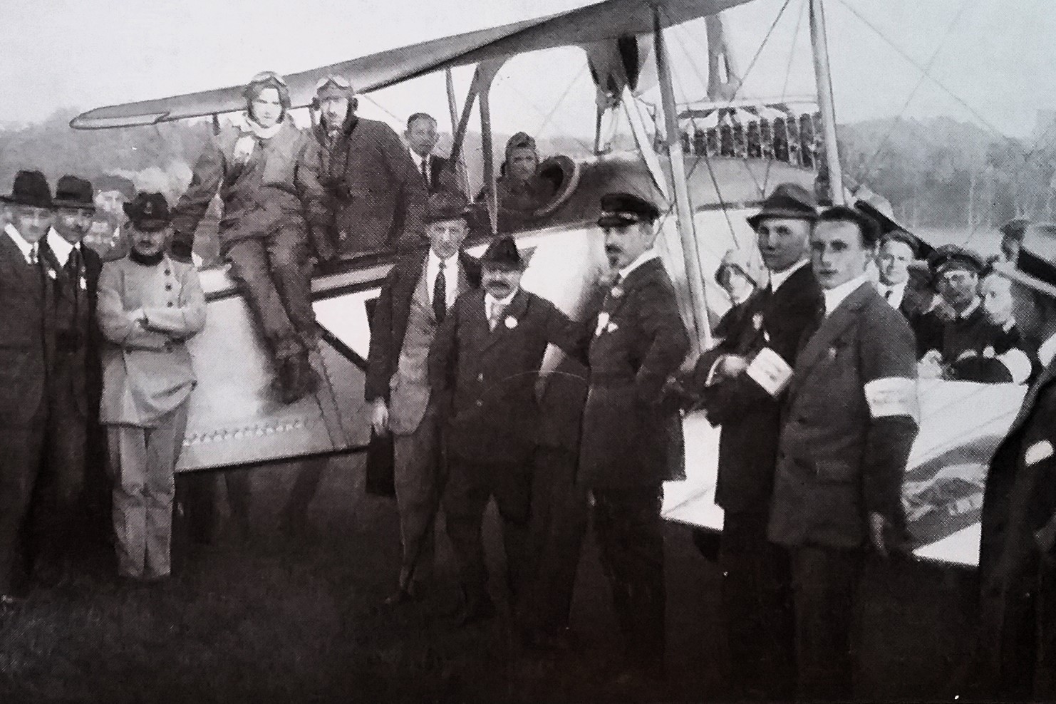 Elektrifizierung durch Wasserkraft: Ru C I-Flugkapitän Adolf Doldi mit Ministerpräsident Dr. Gustav v. Kahr (l) und Geh. Baurat Dr. Oskar v. Miller (r) vor dem Flug zum Walchensee-Kraftwerk - Flugfeld Oberschleissheim 6. Juni 1921 (Fotografie im Privatbesitz / Fischer, Heinrich - München + (Kranzhoff: "Edmund Rumpler - Wegbereiter der industriellen Flugzeugfertigung", S.340 - 2004)+ bridgemanimages.com. Zu Adolf Doldi: Später Lufthansa-Pilot und SS-Obersturmbannführer, SS-Nr. 276.881, am 21.8.1944 abgeschossen)