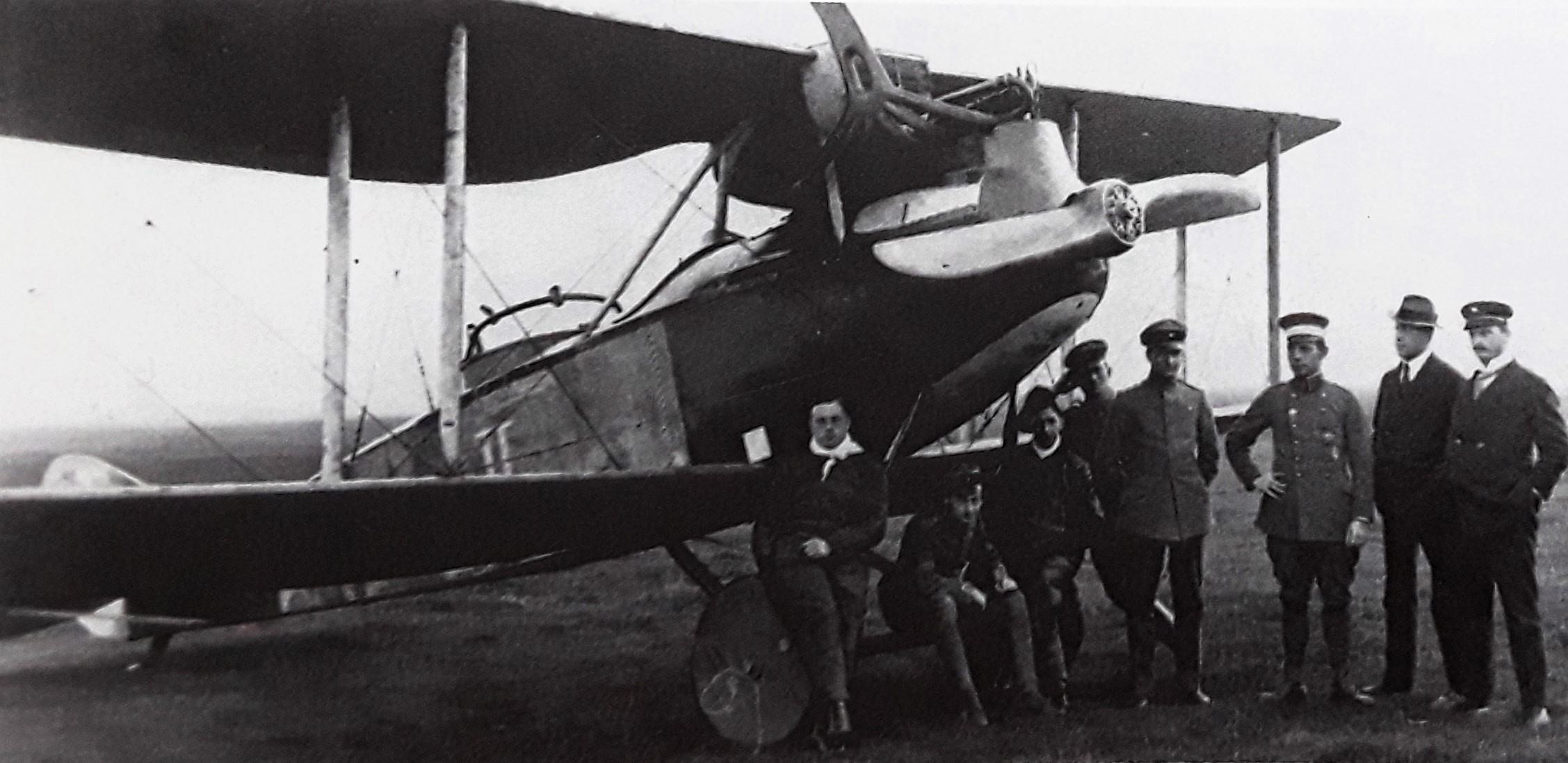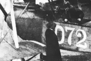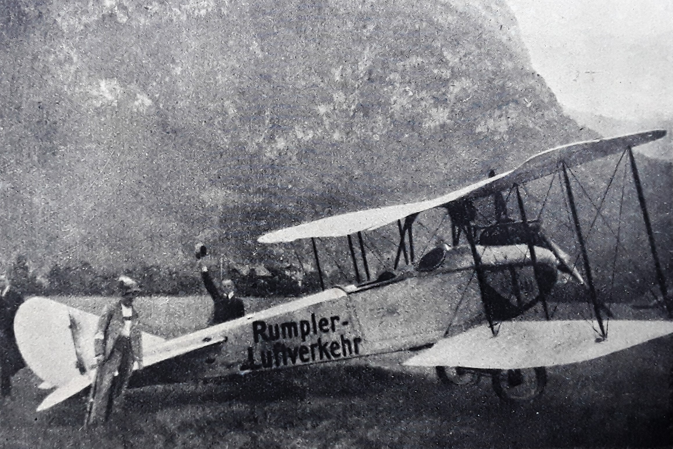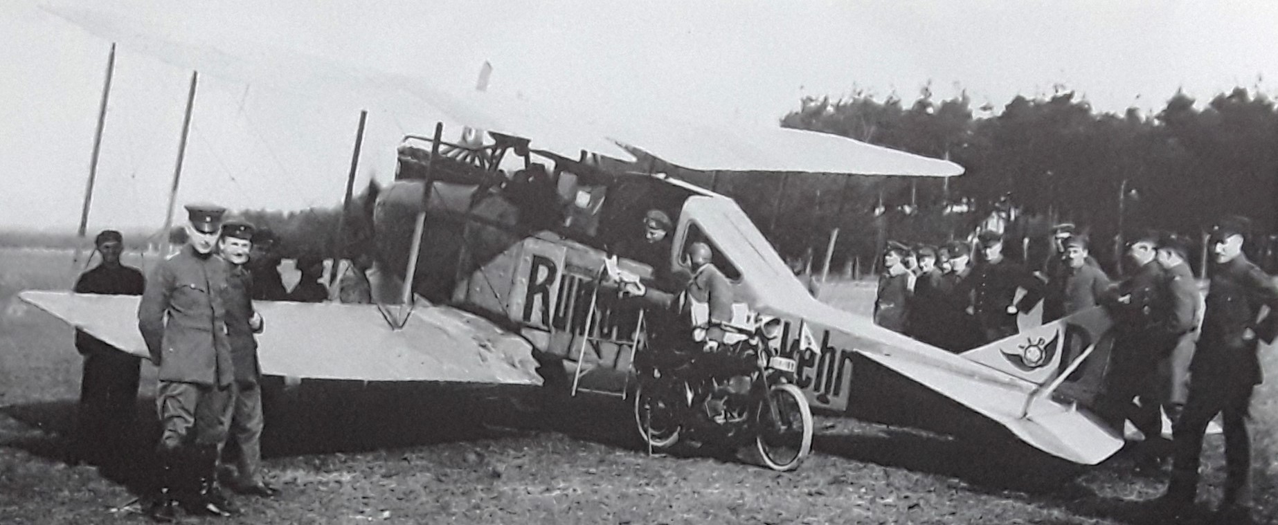 "Außergewöhnliche Steigfähigkeit": Ru C IV/D 100 auf dem Augsburger Flugfeld - 1917 (Links Pilot Adolf Doldi, rechts der kaumännische Direktor Hermann Aumer neben dem technischen Rumpler-Direktor Otto Meyer, in Kranzhoff: "Die deutsche Luftfahrt - Edmund Rumpler", S.334 - 2004)