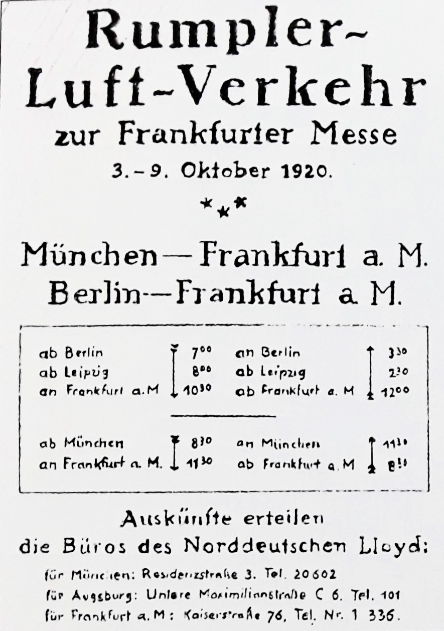 "Am 24. Oktober 1916 wird in Augsburg eine Zweigniederlassung unter der Bezeichnung 'Bayerische Rumpler-Werke A.G.' errichtet, an der die Augsburger Ballon-Fabrik A.G. August Riedlinger beteiligt ist. (-Edmund-) Rumpler ist Vorsitzender des Aufsichtsrates. Kaufmännischer Direktor des Unternehmens ist Diplom-Ingenieur Hermann Aumer, technischer Direktor ist Otto Meyer, Betriebsingenieur ist Hermann Wipf. Auf dem käuflich erworbenen Gelände sind im Mai 1917 drei moderne Fabrikhallen mit einer Grundfläche von 4900 m2 mit Anschluß an die Augsburger Lokalbahn fertiggestellt. In unmittelbarer Nähe erwirbt Rumpler auch ein großes und ebenes Flugplatzgelände. In Augsburg werden (-ab Mai 1917-) nahezu ausschließlich die Aufklärer Ru C I und C IV produziert (-1917=100 Stück, 1918=350 Stück-).(...) Bei Kriegsende beträgt die Zahl der Mitarbeiter 2300, von denen etwa 1000 in dem Augsburger Zweigwerk beschäftigt sind." (Kranzhoff: "Edmund Rumpler - Wegbereiter der industriellen Flugzeugfertigung", S.329/330 - 2004)