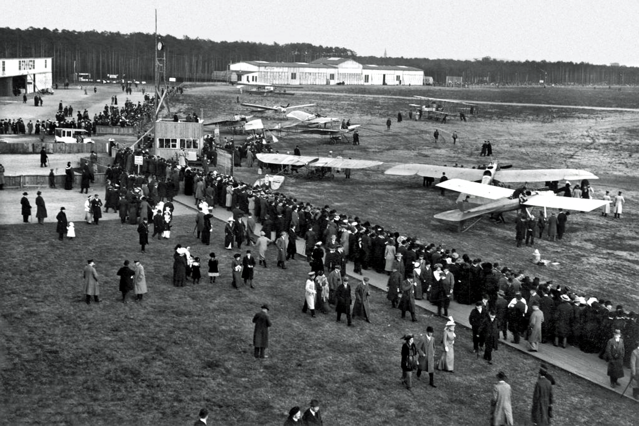 Rundflug um Berlin - 30./31. August 1913 (Wikimedia Commons - Datei: FlugplatzJohannisthalAmStartplatz.png / o.A.)