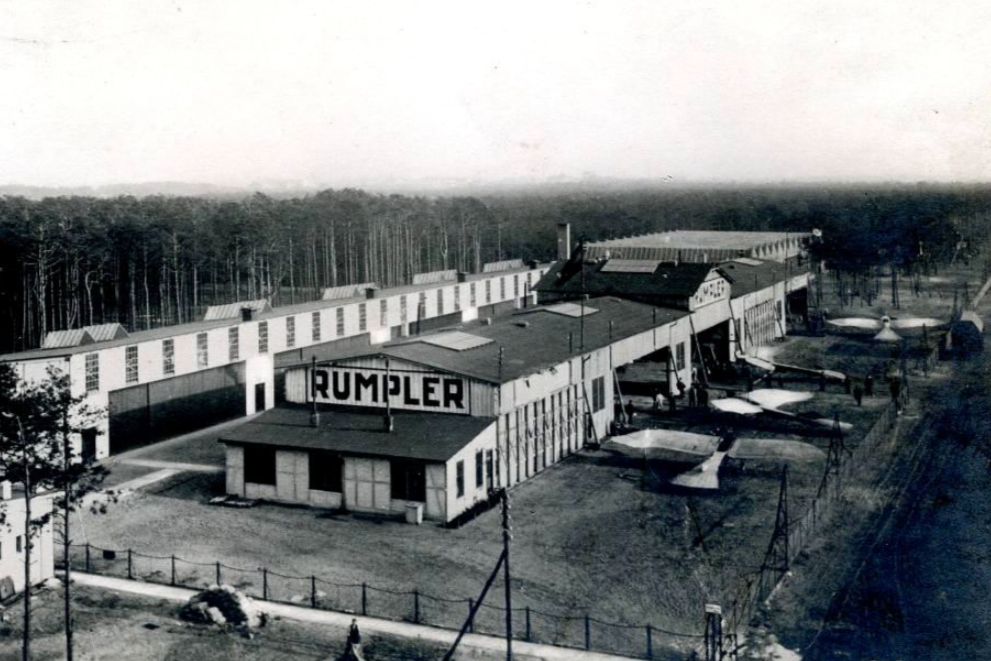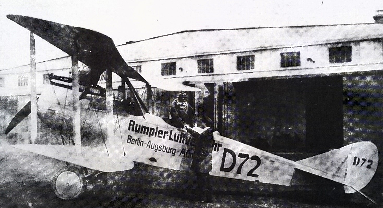 Nach einem Jungfernflug vom September 1916 und einem entsprechenden Vorvertrag über 400 Flugzeuge der Ausführung C IV wünscht sich die Heeresführung zur Mitte des Weltkrieges eine schnelle Lieferung des Höhenaufklärers für den Fronteinsatz. Der wenige Wochen daraufhin absolvierte Testflug vom 18. Oktober 1916 lässt die Militärführung hoffen: Ein Höhenanstieg auf 5000 Meter in nur 33 Minuten bei voller Beladung und einer Höchstgeschwindigkeit von 165 km/h erfüllt die Erwartungen an die Artillerie- und Aufklärungsmaschine. Schon eine Woche später wird die Rumpler-Zweigniederlassung in Augsburg offiziell gegründet und am 25. November 1916 der erste Spatenstich für das neue Flugzeugwerk südlich der Stadt vorgenommen. Der angegliederte Flugplatz beinhaltet jedoch auch Nachteile: