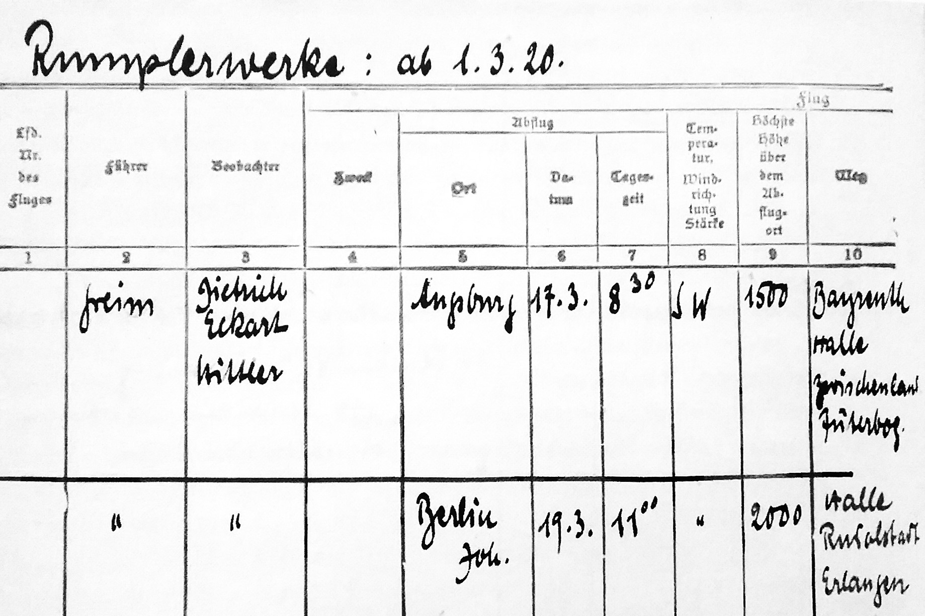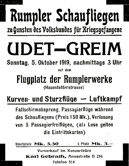 "Die Maschine (-Ru C IV/ später mit der Kennung D 100-) ist außerordentlich stabil, aber dennoch sehr wendig und sie verfügt über eine außergewöhnliche Steigfähigkeit. Bei dem hier erwähnten Höhenflug wurden außer der zweiköpfigen Besatzung (-Pilot Simon u. Werkdirektor Otto Meyer-) noch 100 Kilo Ballast sowie 240 Liter Benzin und die notwendige Ölmenge mitgeführt. Innerhalb von 10 Minuten erklomm die Maschine eine Höhe von 2300 m, erzielte also eine vortreffliche Leistung." (Pletschacher: "Die Königlich Bayerischen Fliegertruppen 1912-1919", S.119 - 1992)