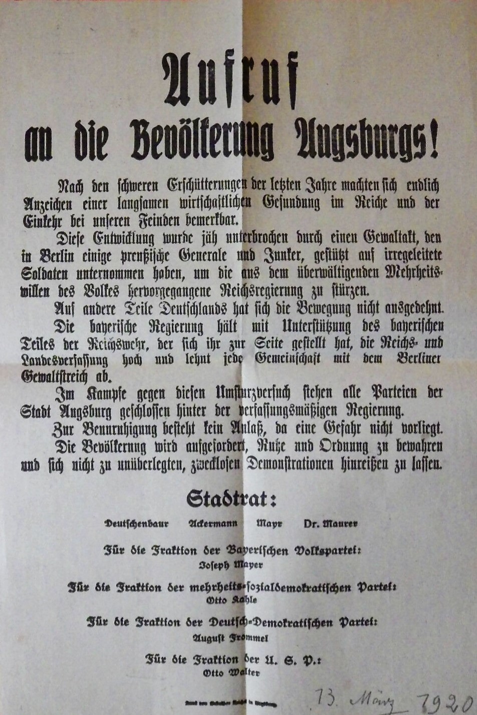 Der mit der Augsburger Familie zu diesem Zeitpunkt eng befreundete Amtmann Georg Fischer notiert zu Dr. Grandels politisierten Aktivitäten des Jahres 1919 rückblickend: