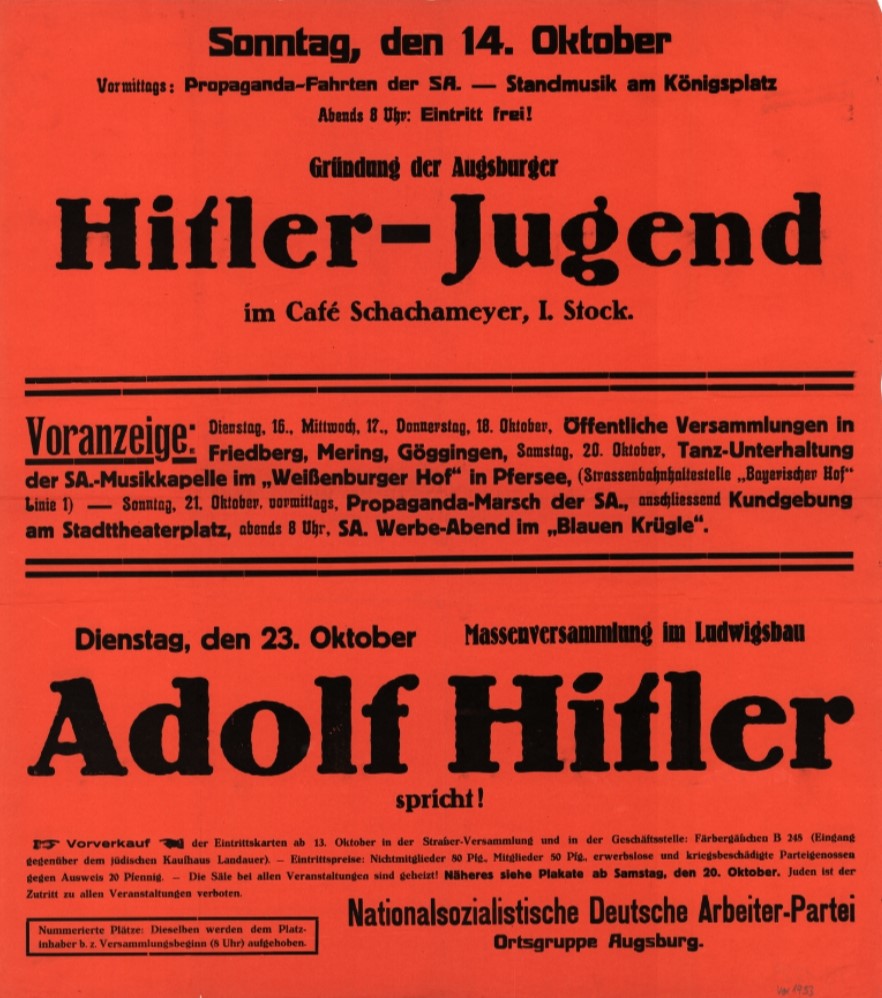"Ich war Vorsitzender u. Herr Dr. Grandel mein Kassier bei der Ortsgruppe Augsburg der national-sozialistischen deutschen Arbeiterpartei schon im Jahre 1921." (LArch Berlin: A Rep. 358-01 Nr. 6011 - Josef Schröffers Bitt-Brief an Reichskanzler Dr. Gustav Stresemann, Deutsche Volkspartei, v. 2.5.1924)