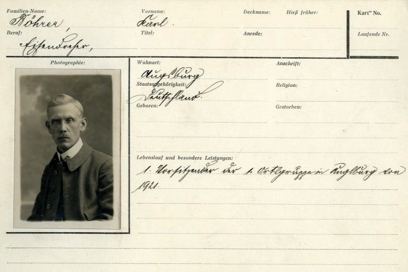 "Die Ortsgruppe Augsburg der NSDAP ist auf meine Initiative im Winter 1920/1921 gegründet worden." (BArch Berlin: NS26/514, S.597/Bl.1 - Dr. Grandel an das NSDAP-Hauptarchiv v. 6.11.1942)