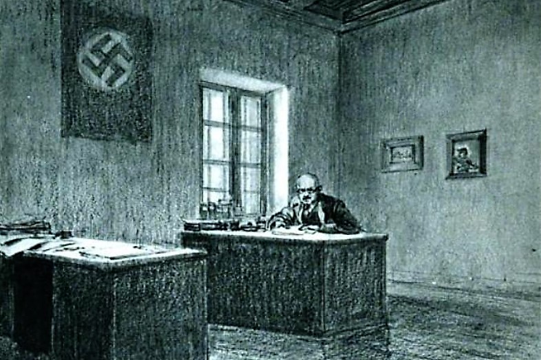 "Wenn inzwischen festgestellt ist, daß er nicht eingeschriebenes Mitglied der nationalsozialistischen Partei war, so muß doch darauf hingewiesen werden, daß er sich eifrig bemüht hat, auf nationalsozialistische Kreise Einfluß zu gewinnen."