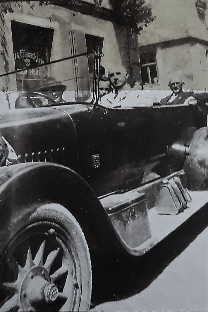 Ausflug nach Tapfheim mit dem firmeneigenen Mercedes der Firma Grandel: Angestellter (Otto?) Ranner - 29. September 1929 (Fotografie im Privatbesitz der Hamburger Enkeltochter von J. Rupp)