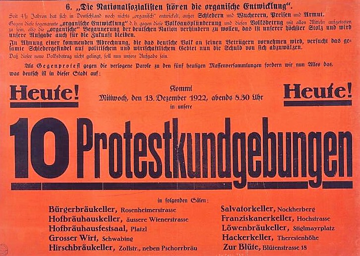 Das Muster gleicht auch hier den vorherigen Erfahrungen: Durch ständig sich steigernde Zustimmungsrufe aus dem Publikum sieht sich der DAP-Werbeobmann nicht nur in seiner Agitationsform, sondern auch inhaltlich bestätigt. Seine Form der Propaganda wird nicht nur vom Bürgertum, sondern zunehmend auch von den Arbeitern frequentiert.