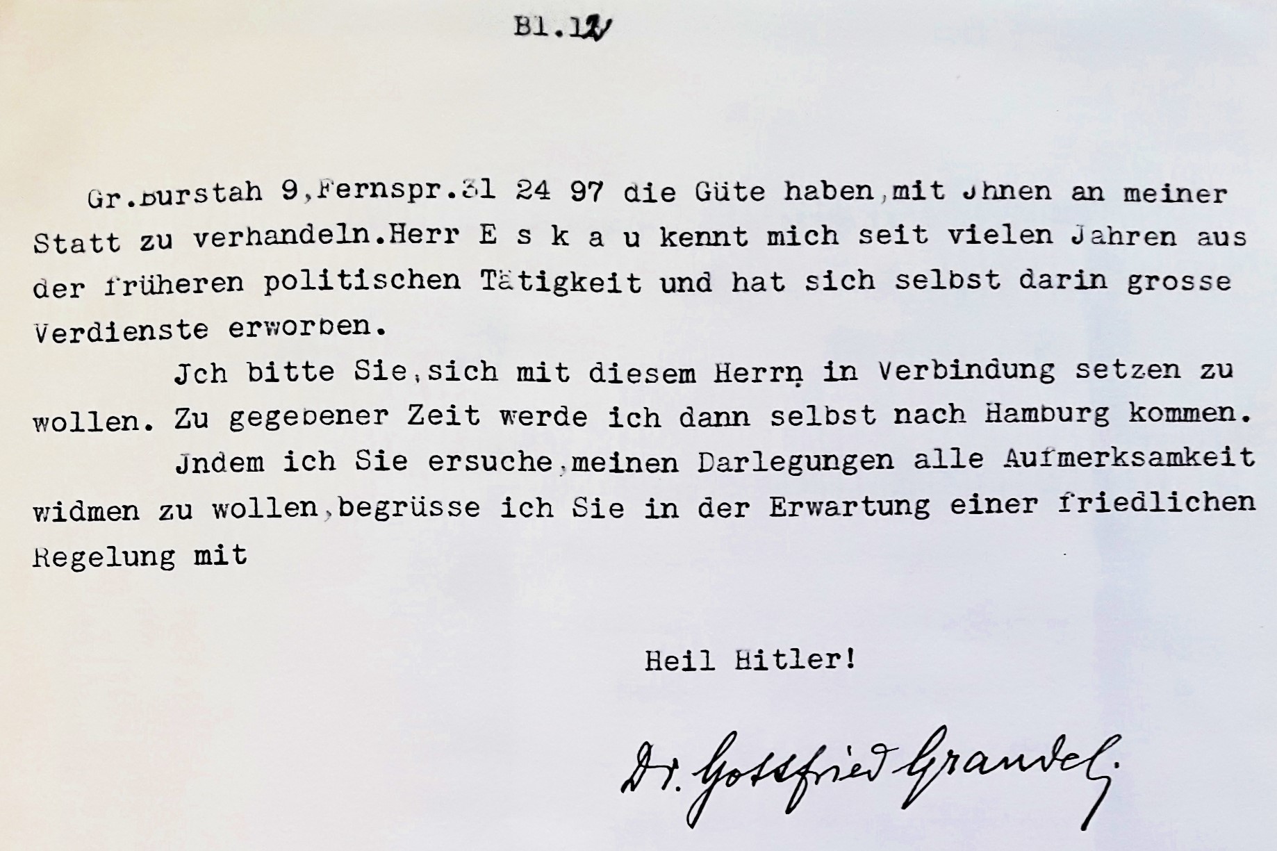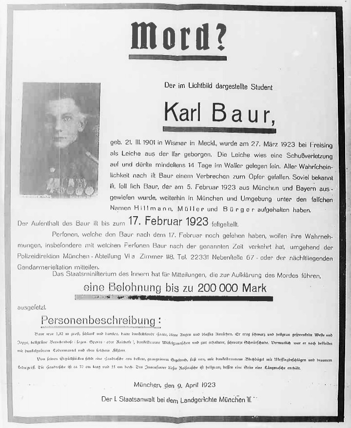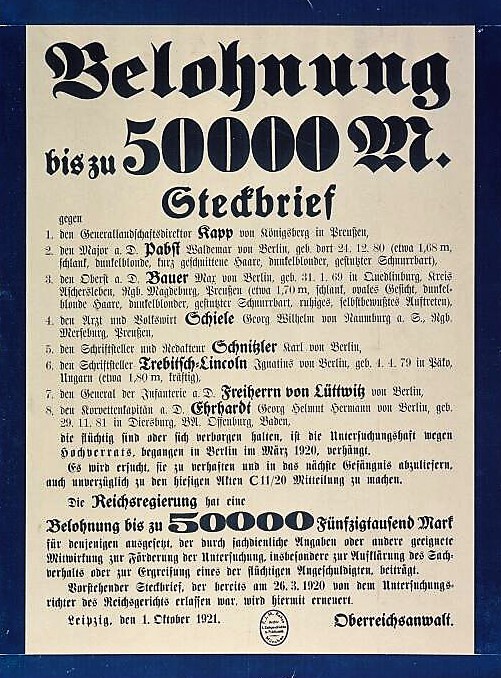 "Wie die 'Münchener Allgemeine Zeitung' aus Augsburg meldet, hat der wegen des Mordkomplottes gegen den General v. Seeckt verhaftete und nach Berlin gebrachtete Fabrikbesitzer Dr. Gottfried Grandel als fanatischer Anhänger der nationalsozialistischen Partei in dieser eine ziemlich große Rolle gespielt." (Digitalisiert auf fes.imageware.de: Vorwärts, Nr.36, S.2 - "Zum Komplott gegen Seeckt" v. 22.1.1924)