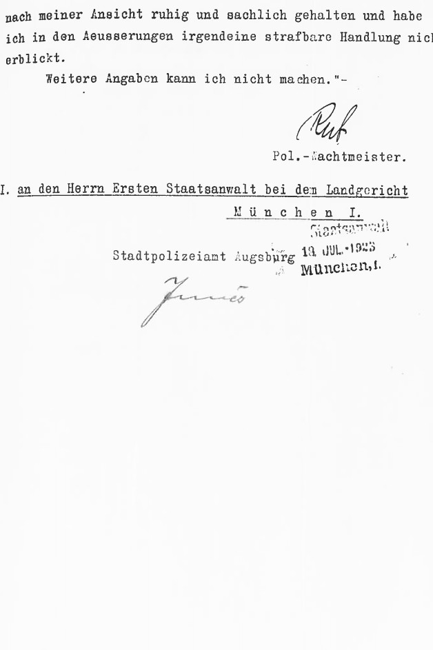 Der misslungene Hitler-Putsch ist nach den Schilderungen des Augsburger Prokuristen für Dr. Grandel schließlich der Anlass, sich von der Bewegung der Nationalsozialisten gänzlich abzuwenden: