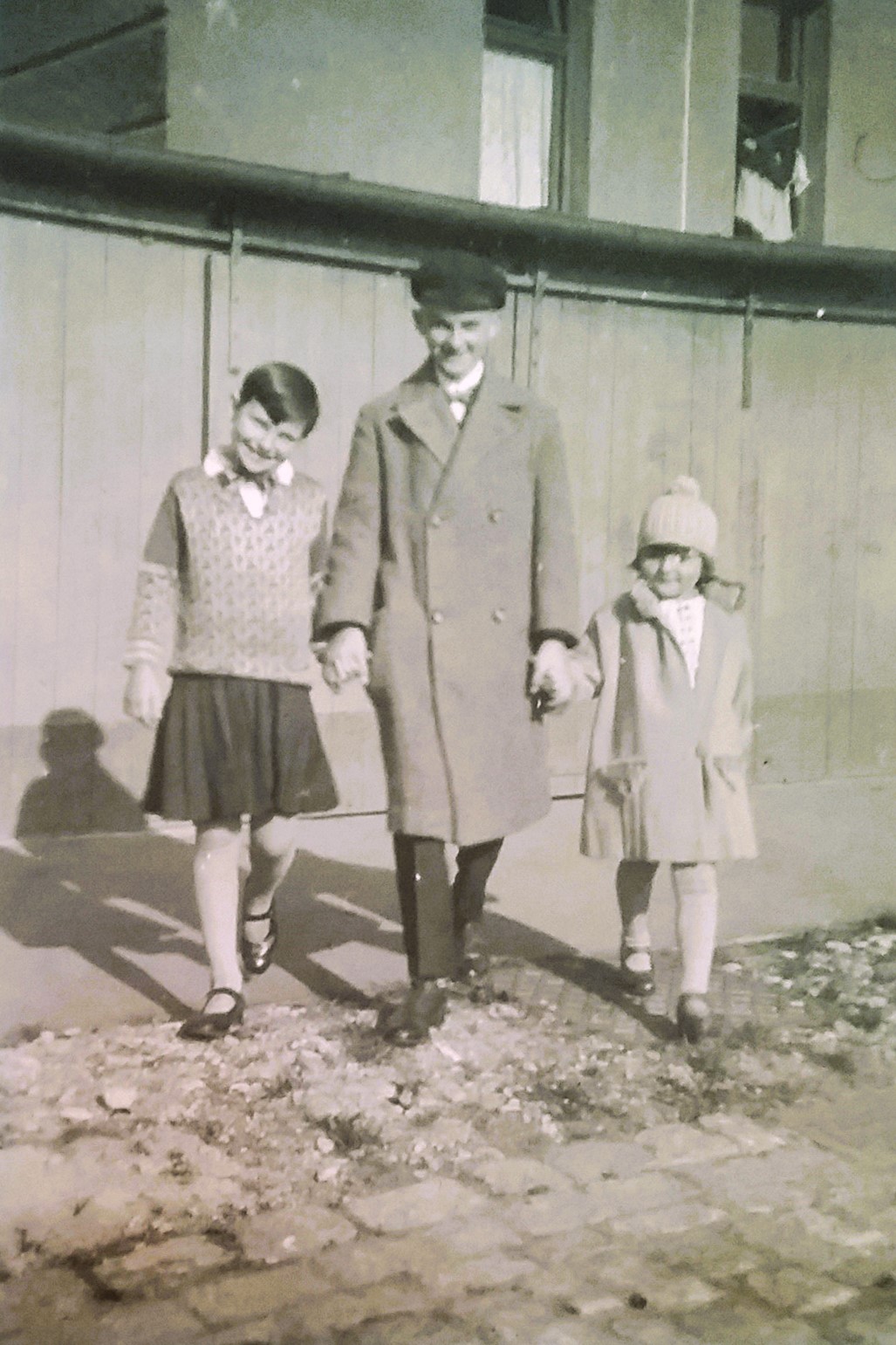 Allgemein beliebt: Mitarbeiter (Otto?) Ranner mit Christel und Maidl Grandel hinter dem Augsburger Wohnhaus in der Johannes-Haagstraße 20 - 1926 (Fotografie im Privatbesitz)