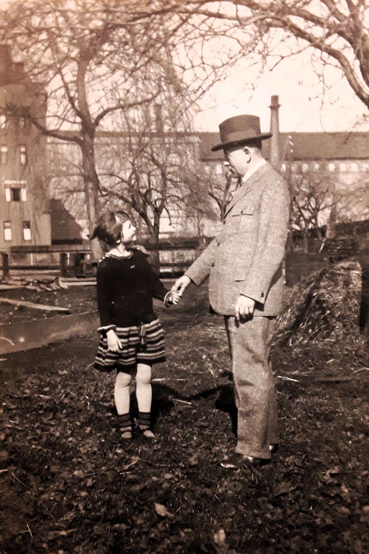 Blick auf das benachbarte Werk I der Mechanischen Baumwoll-Spinn- und Weberei: Gottfried Grandel mit Tochter Christine - 1922 (Fotografie im Privatbesitz)