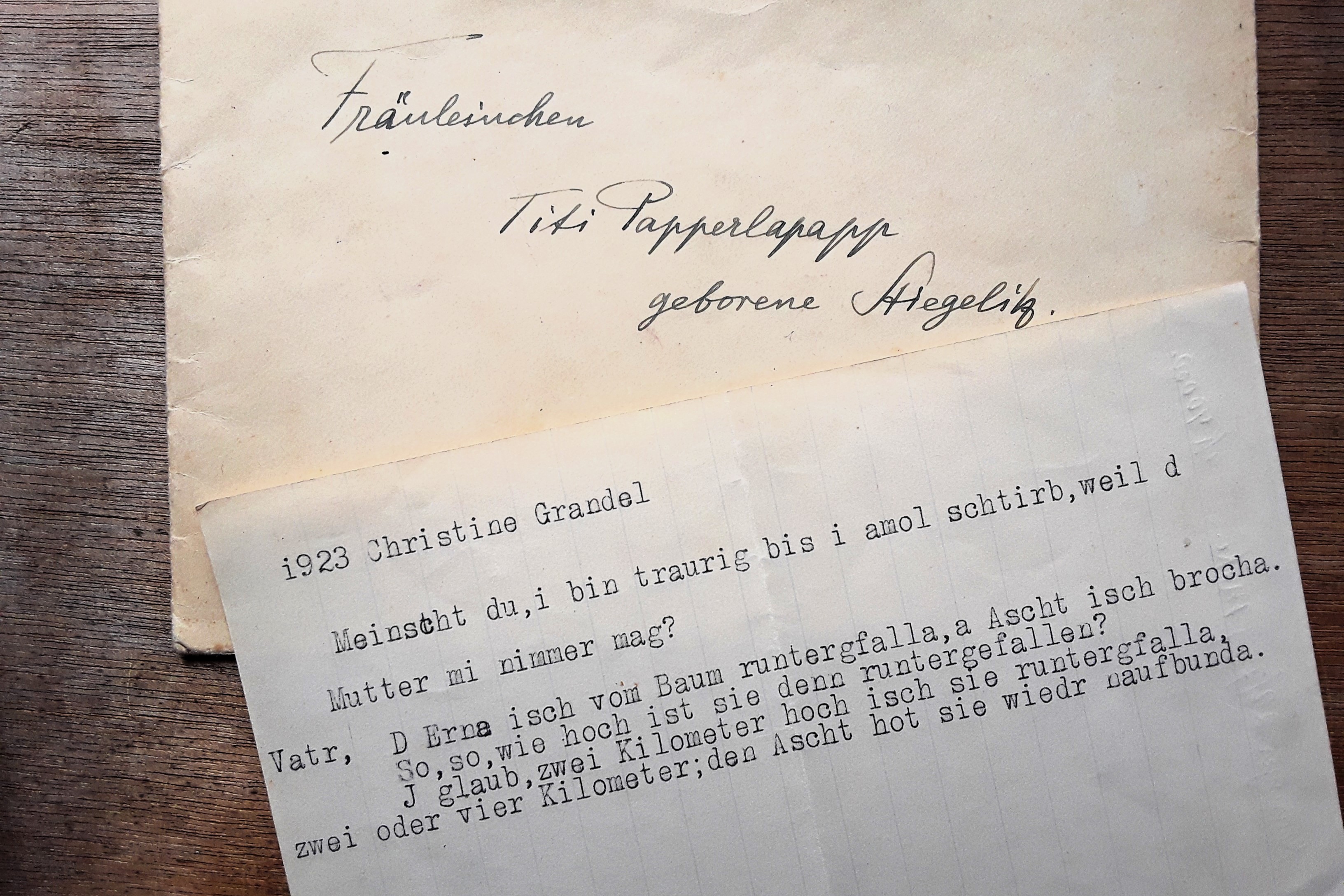 Im Jahr 1925, zum 8. Geburtstag der gemeinsamen Tochter Christine Grandel (gen. Titi), schreibt Helene Grandel der jungen Tochter ein Gedicht: