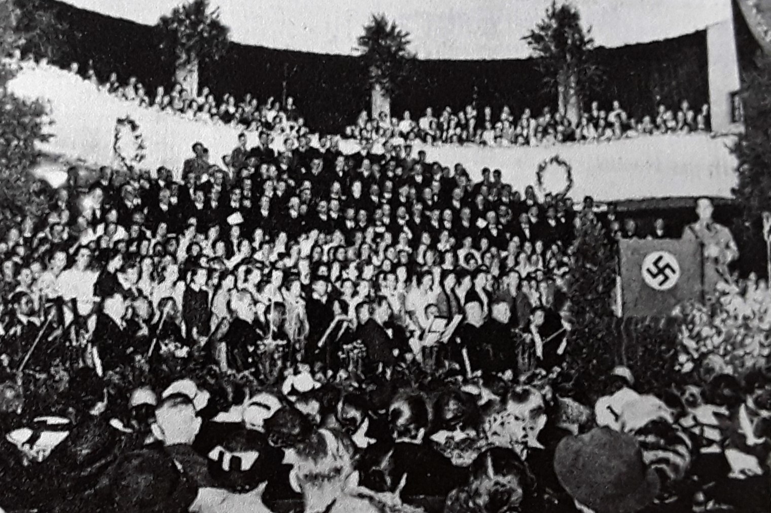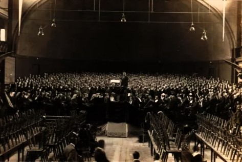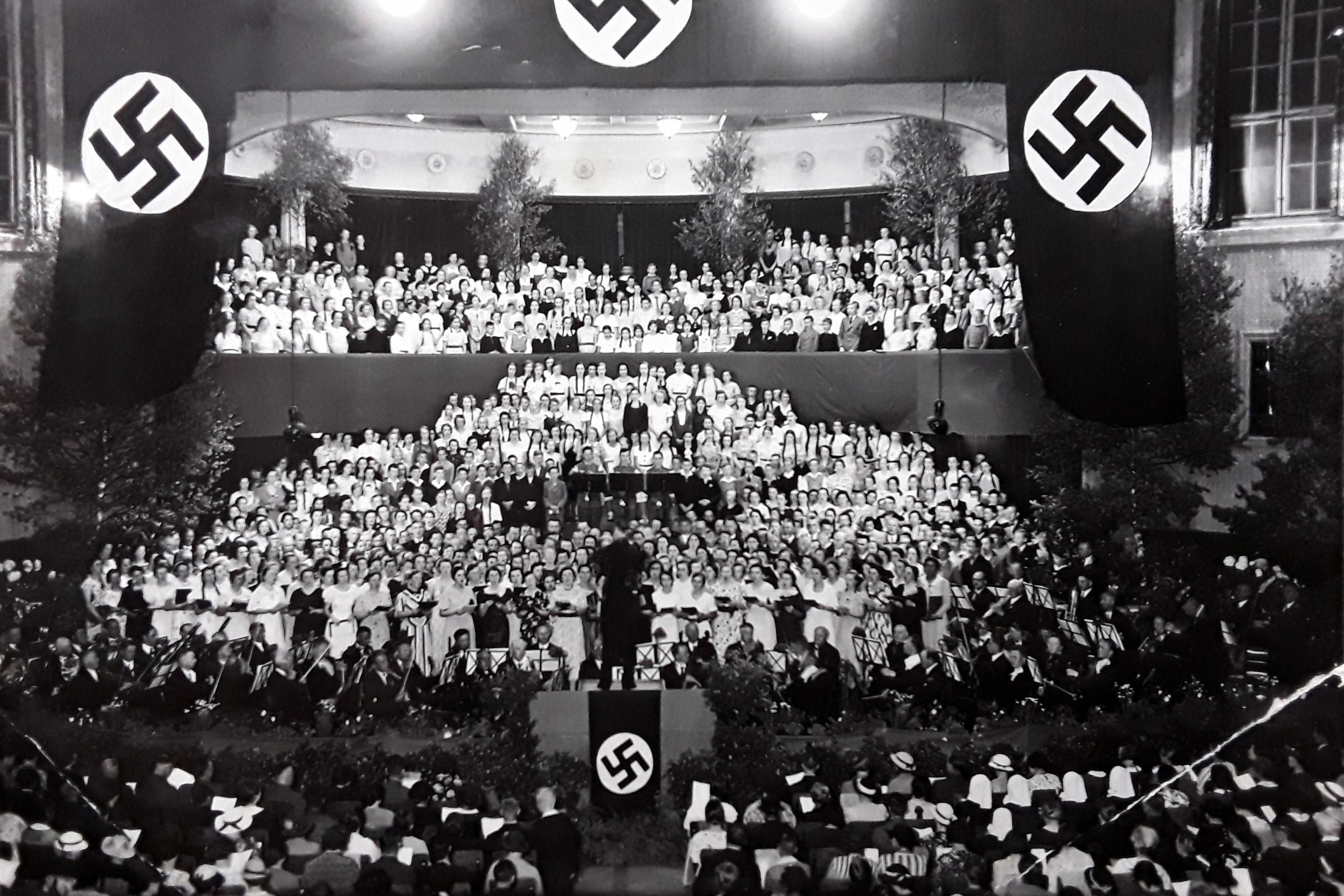 Probe für den 1. Mai: Massenchor in der Augsburger Sängerhalle - 1934 (Postkarte im Privatbesitz / Sturm, Edmund, Augsburg)