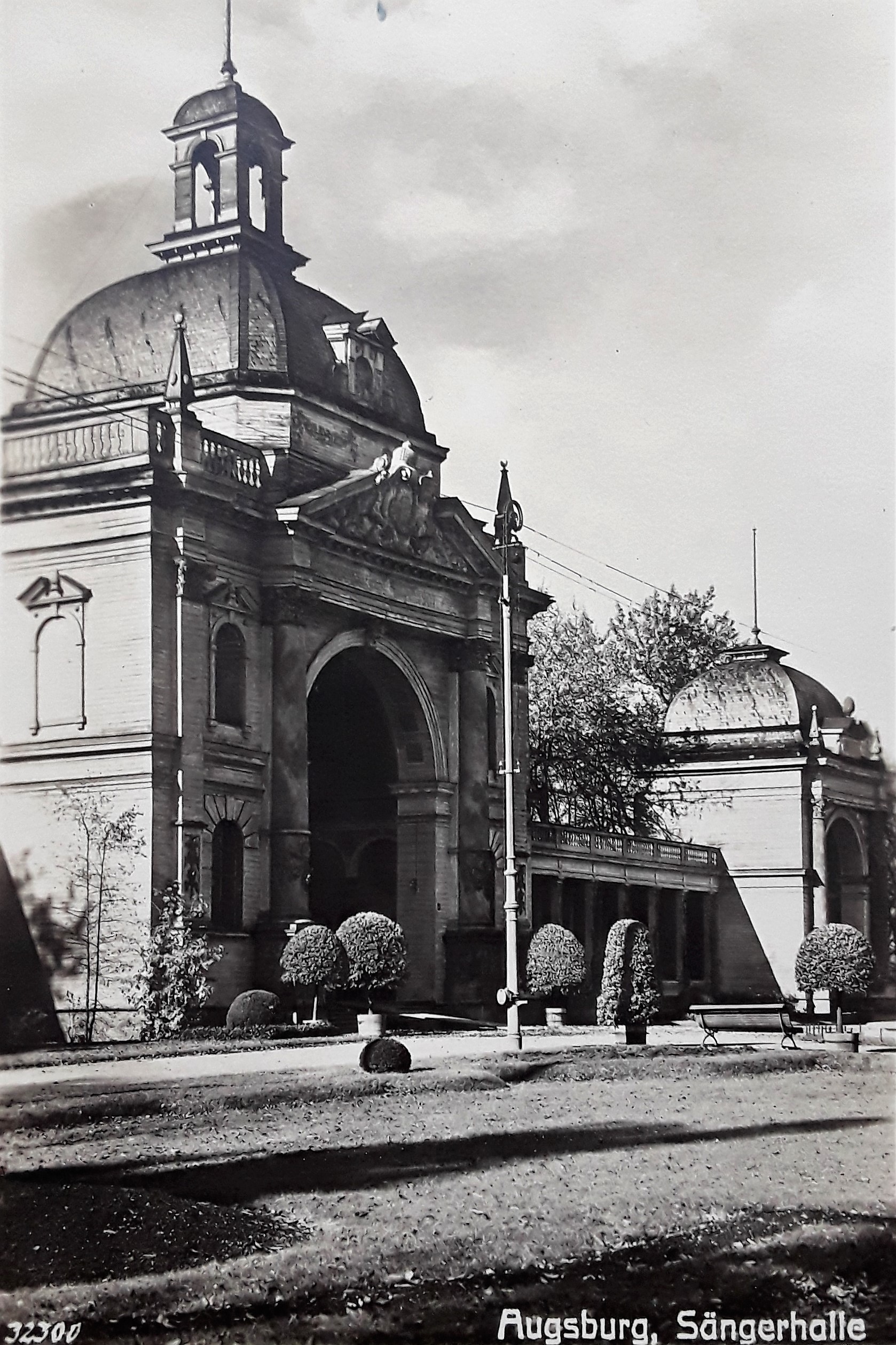 "Ruchlose Verbrecher legten in der Nacht zum 1. Mai (-1934-) die 'Sängerhalle' in Augsburg in Asche. Die Sängerhalle wurde 1886 erbaut und hat seither alle sängerischen Veranstaltungen von Augsburg in ihren Mauern gesehen. Auch für den 1. Mai war eine Veranstaltung vorgesehen, bei der Massenchöre zu Gehör kommen sollten. Brandstiftung staatsfeindlicher Elemente machte die Feier zunichte." ("Die Stimme - Centralblatt für Stimm- und Tonbildung", Bd. 27-29, S.173 - 1934)