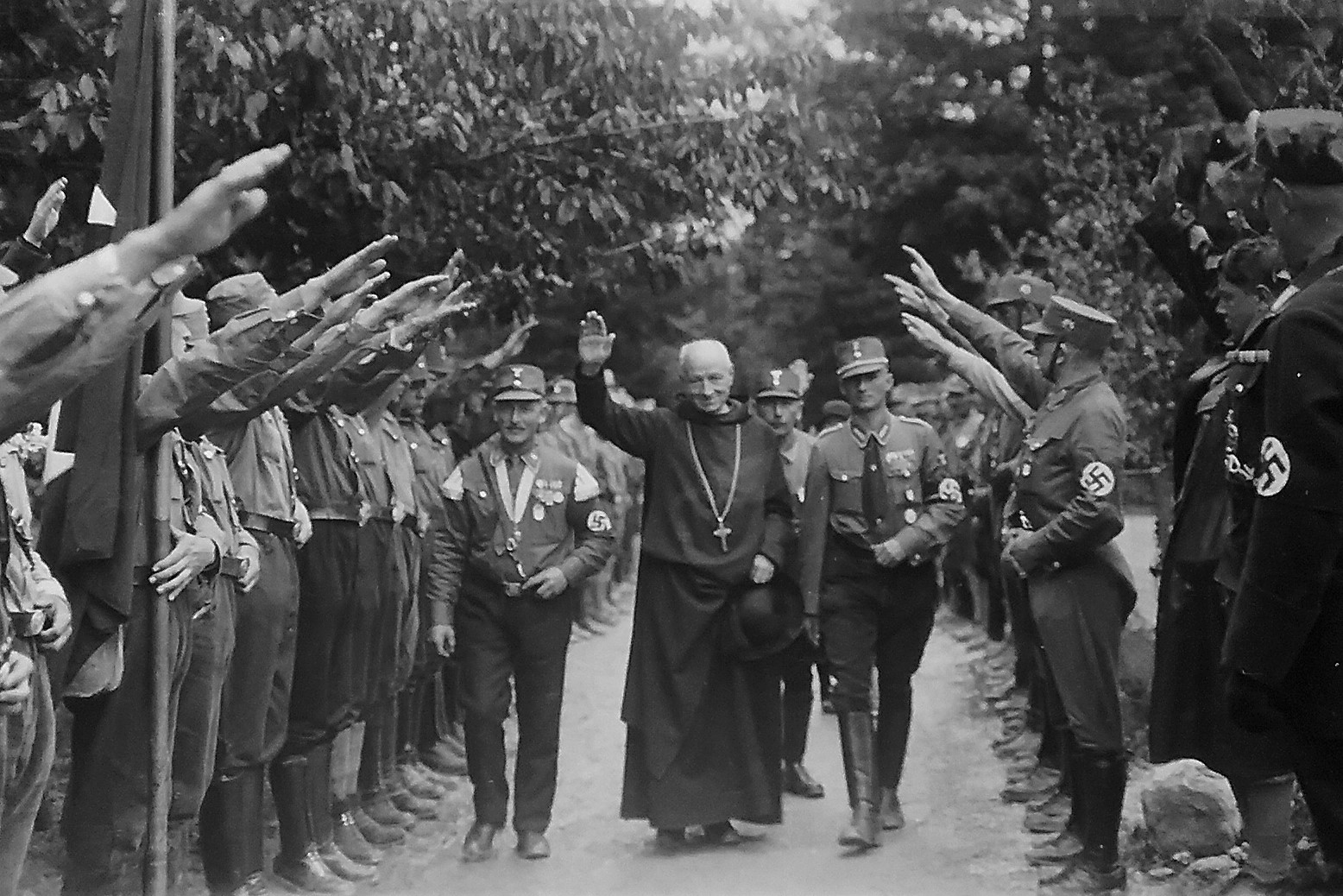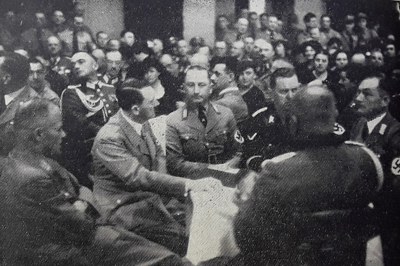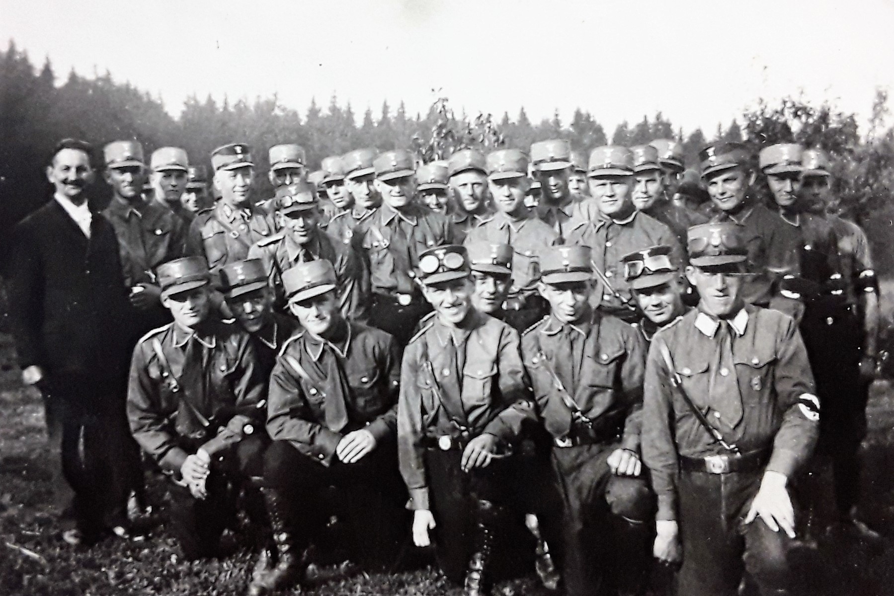 SA-Führerschulung bei Heinrich Dolle (l.) im westfälischen Heilgrund mit dem Augsburger Gauleiter Karl Wahl (erste Reihe stehend, 2.v.r.) - 1933 (Foto: Kreis- u. Stadtarchiv Paderborn: S - M4A, Nr. 10/2 - Nachlass Heinrich Dolle)