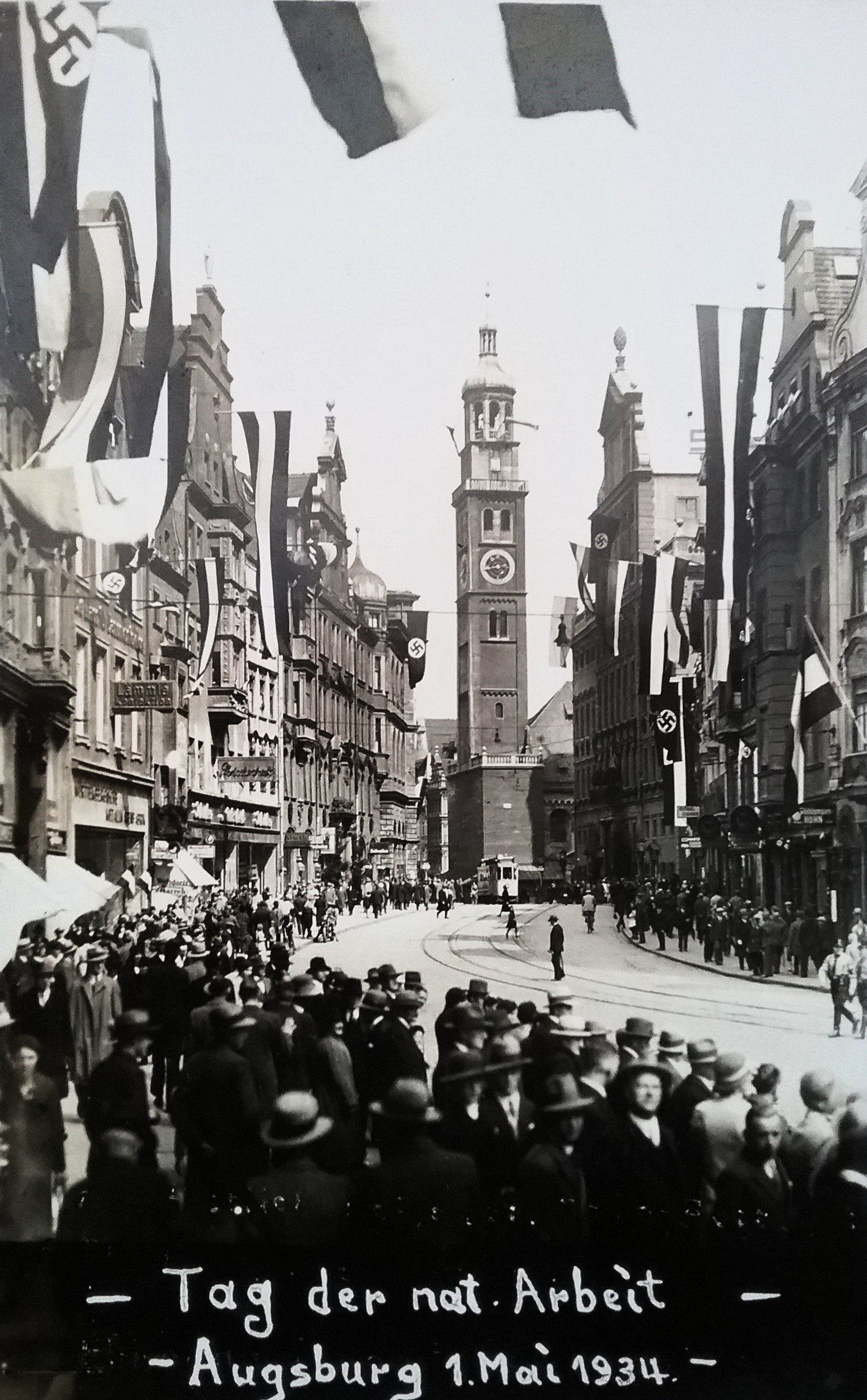 Umfunktioniert für nationale Zwecke: Tag der nationalen Arbeit - 1. Mai 1934 (Fotografie im Privatbesitz / Hermann Schedlbauer - Augsburg)