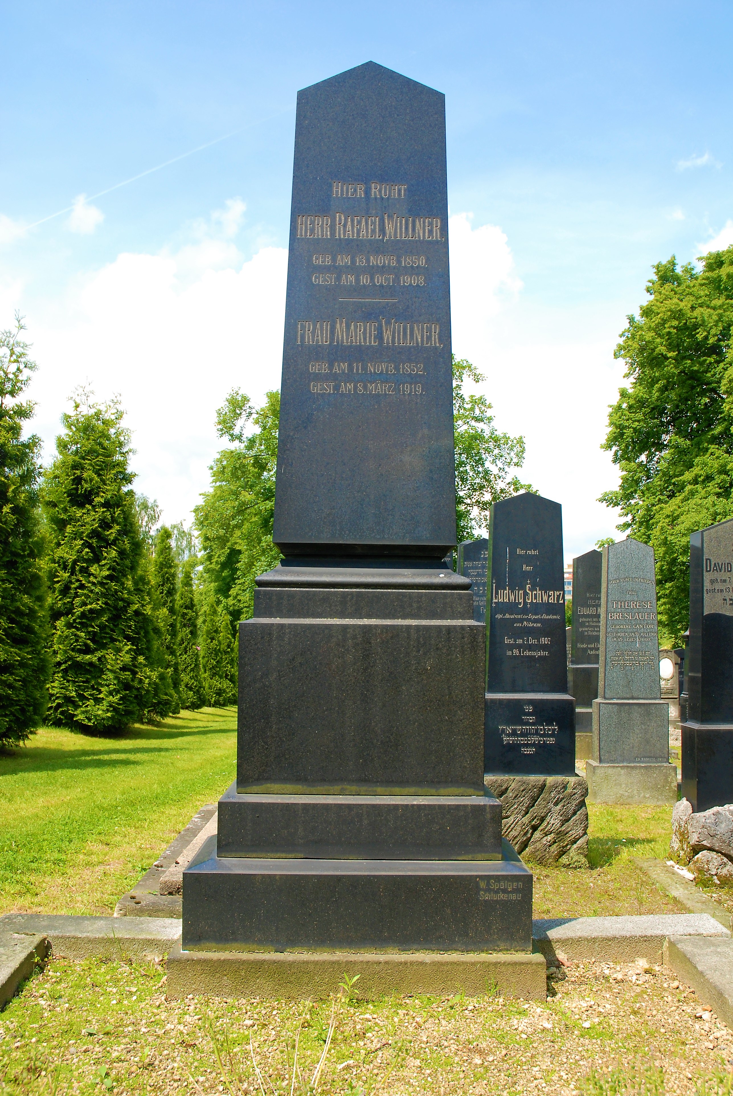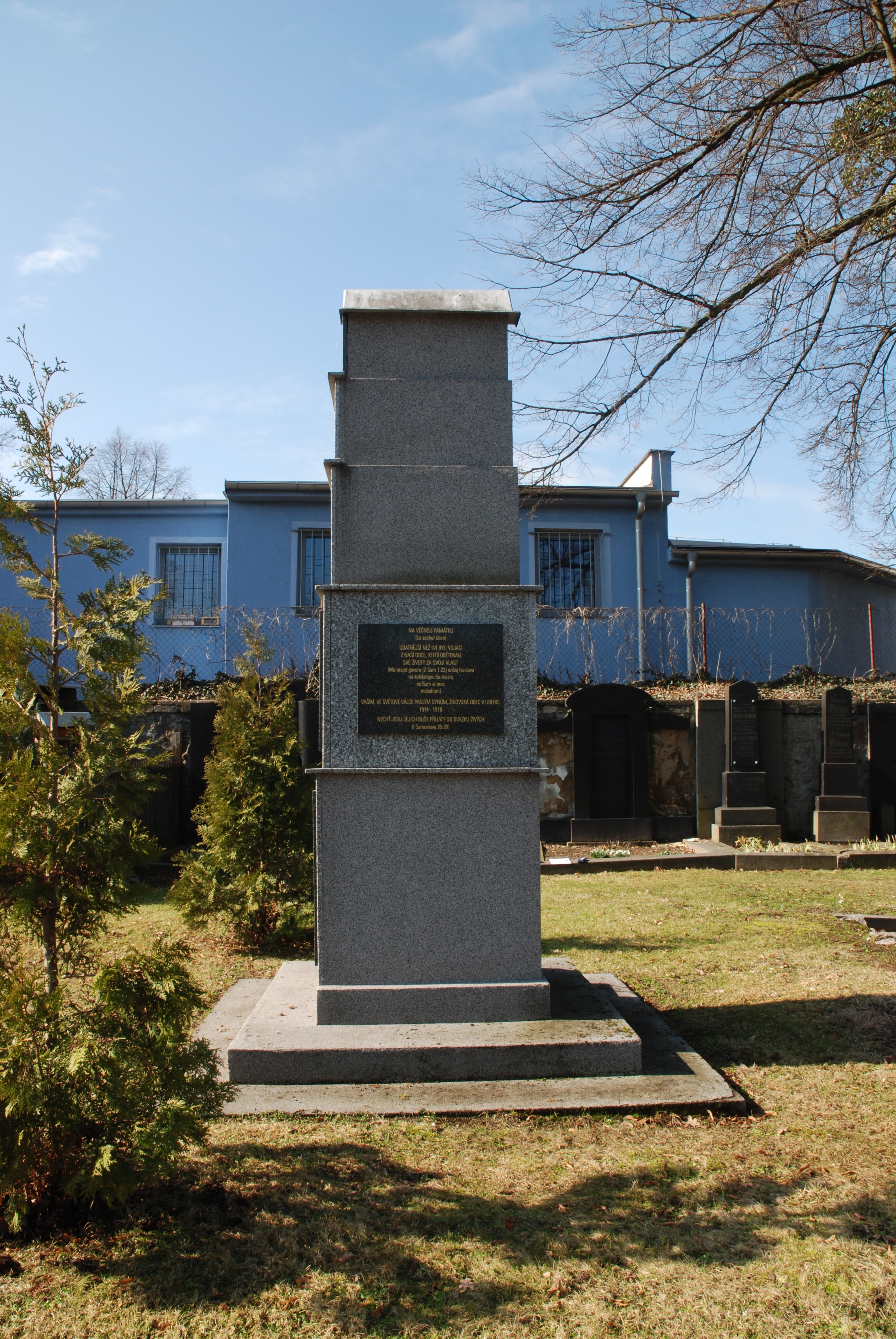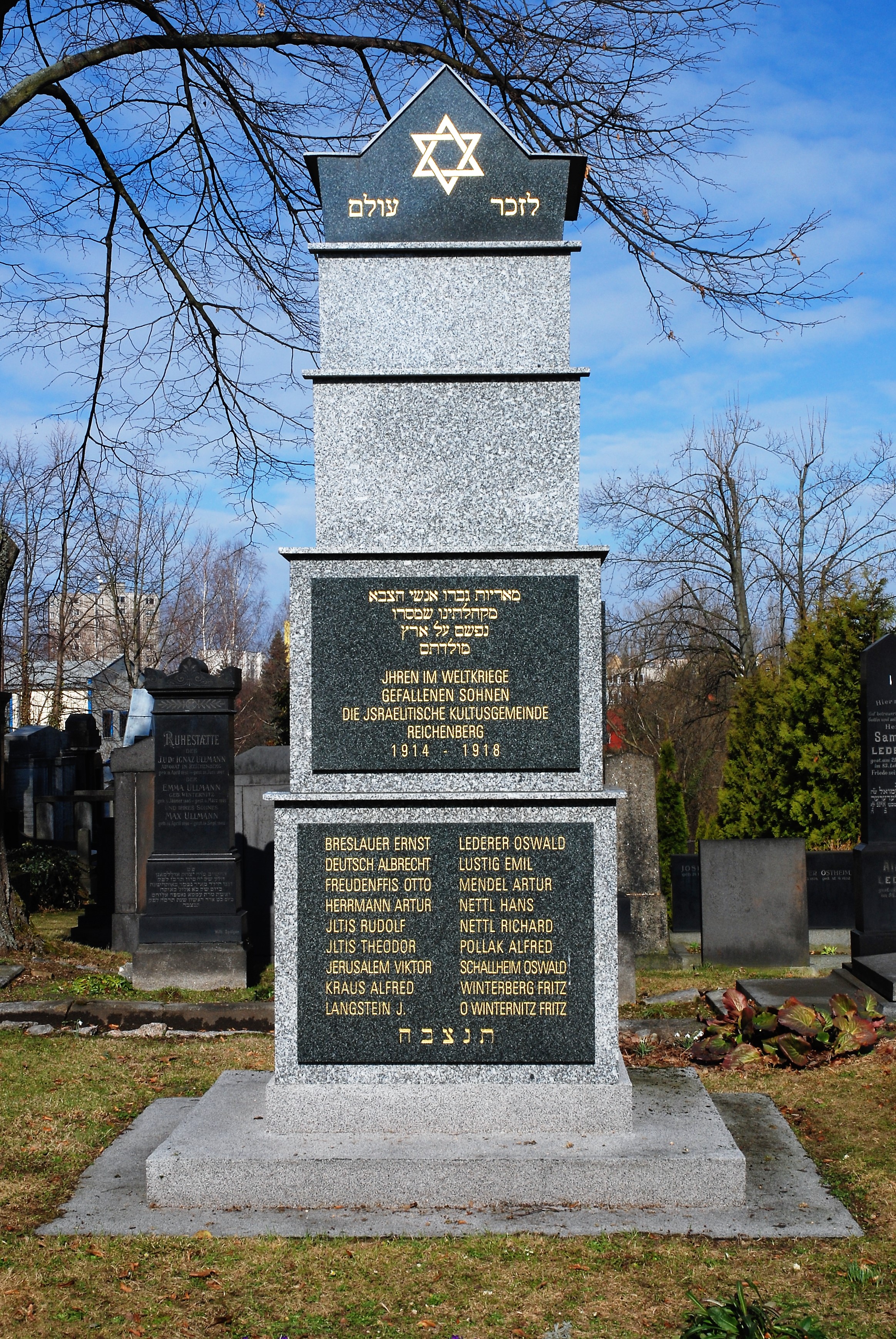 Gedenkstein für die Gefallenen Juden der Reichenberger Gemeinde, unter ihnen Helenes erster Ehemann, Fritz Winternitz - 1927