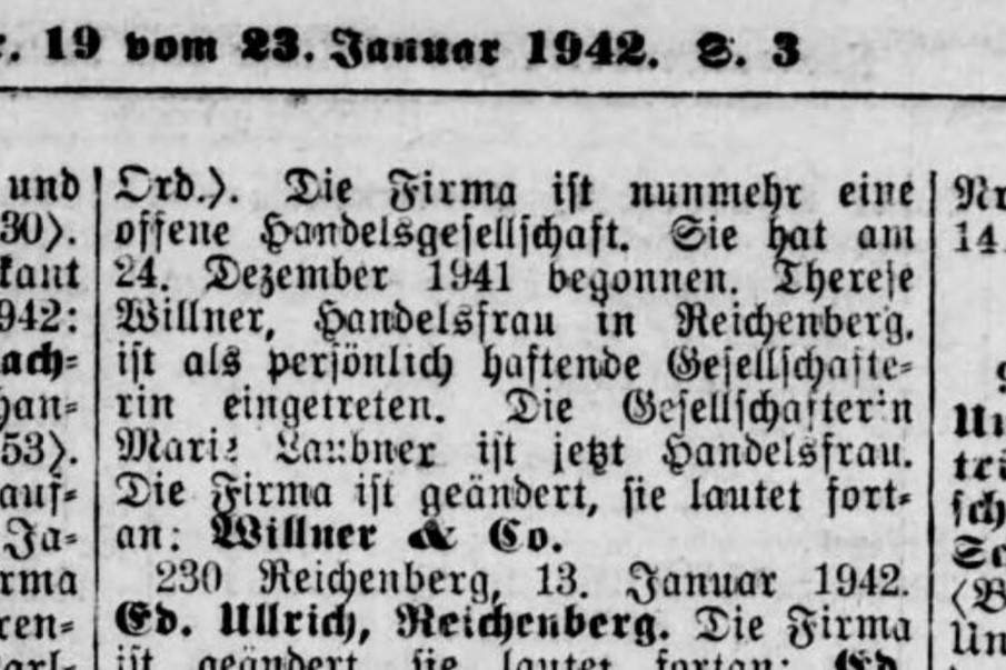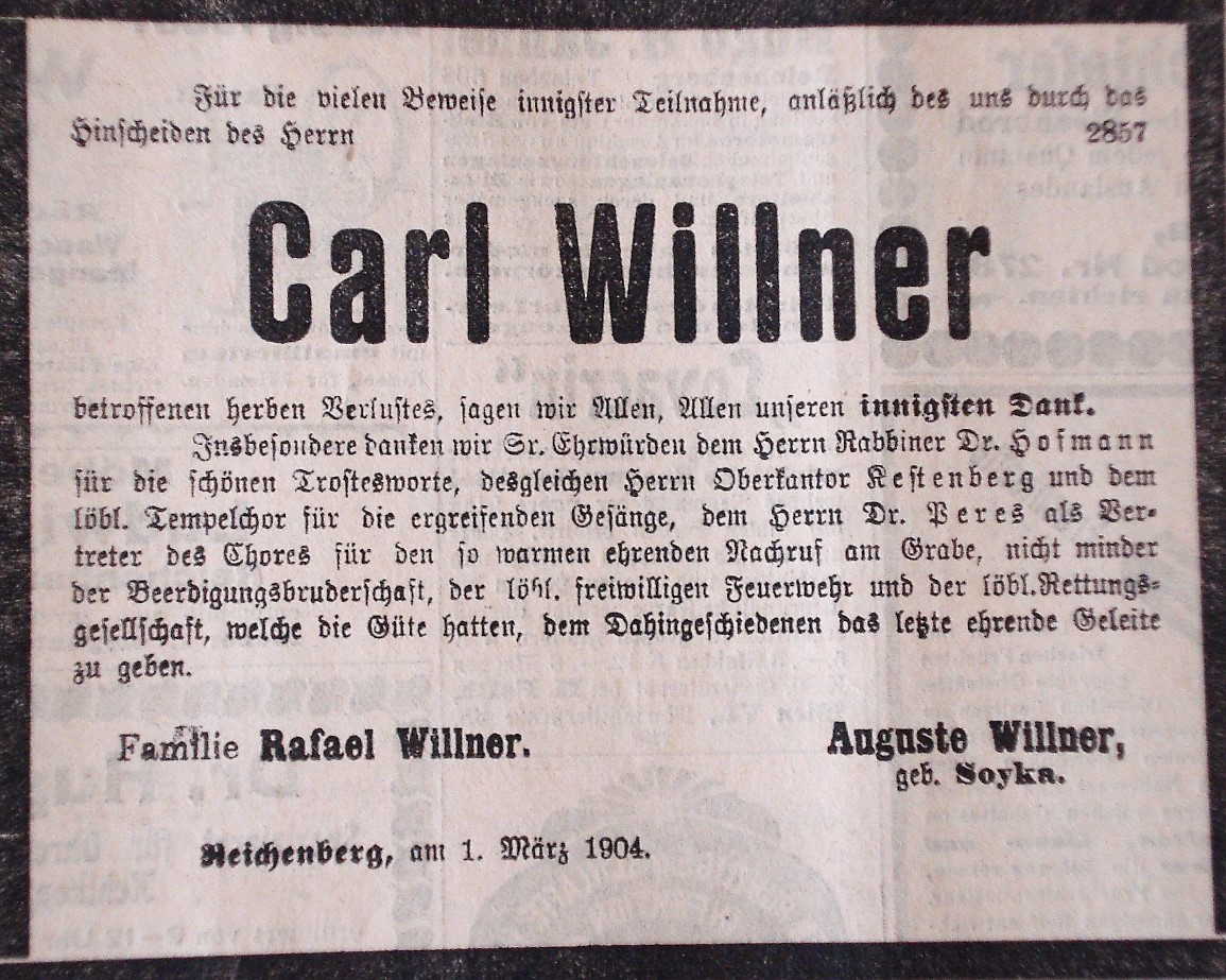 In der Heinrich-Liebig-Straße 41 wohnt Helenes Bruder Rudolf Willner mit seiner Frau Resi. Beide führen in Reichenberg das renommierte Geschäft Rafael & Carl Willner in zweiter Generation. Christel Grandel ist gleich nach Ankunft von dem Möbel- und Einrichtungsgeschäft begeistert. In ihrem Tagebuch vom 30. Juli 1934 notiert sie: