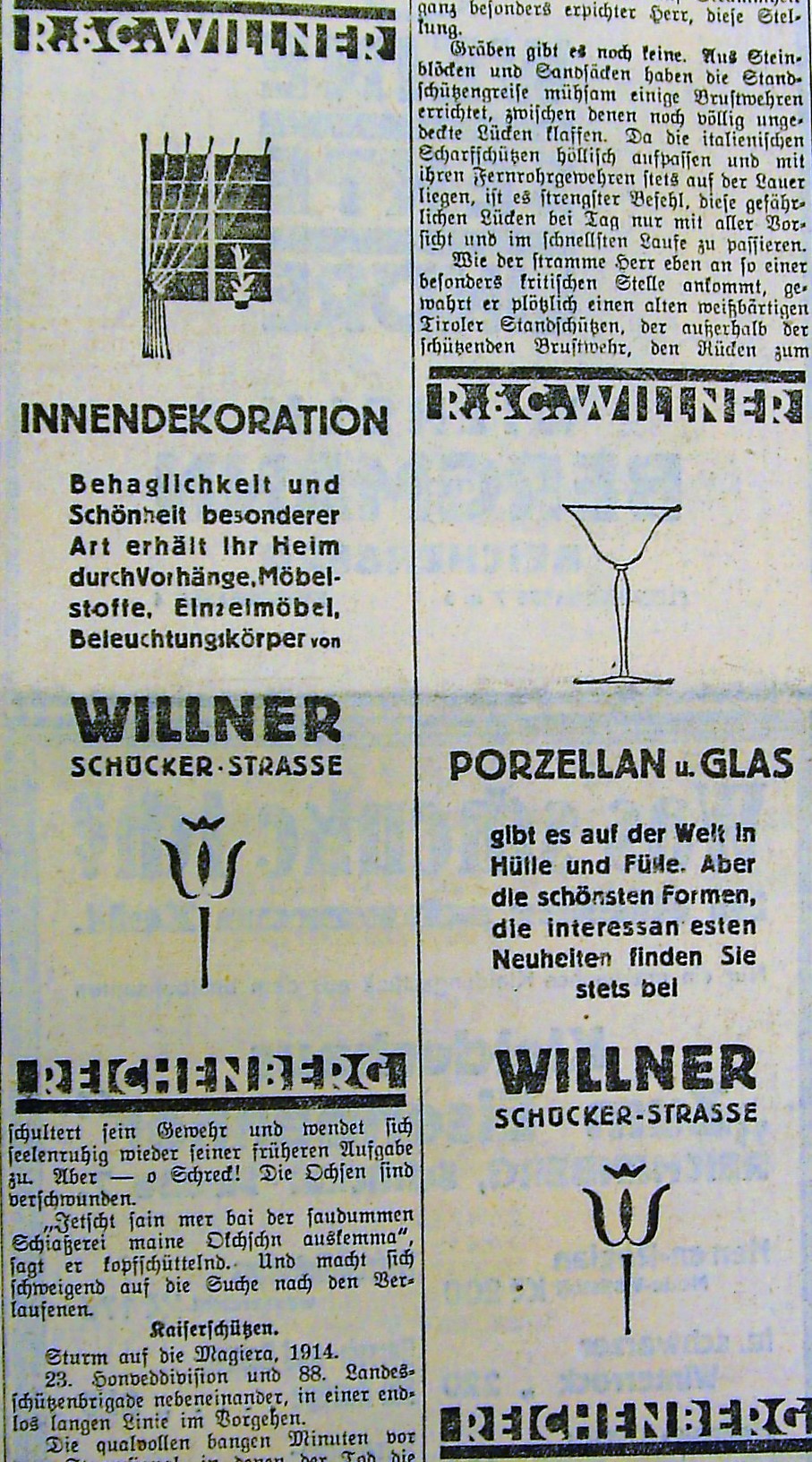 Einrichtungshaus Willner in Reichenberg: Werbeanzeige vom 6. Dezember 1931