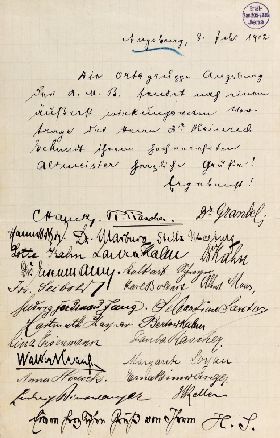 "Maidl ist tot! Gestern bekamen wir noch einen entzückenden Brief von ihr, in dem sie ihren Besuch ankündigte. In einem Anfall von Schwermut hat sie sich im (-Augsburger-) Siebentischwald vergiftet. Arme Maid!
