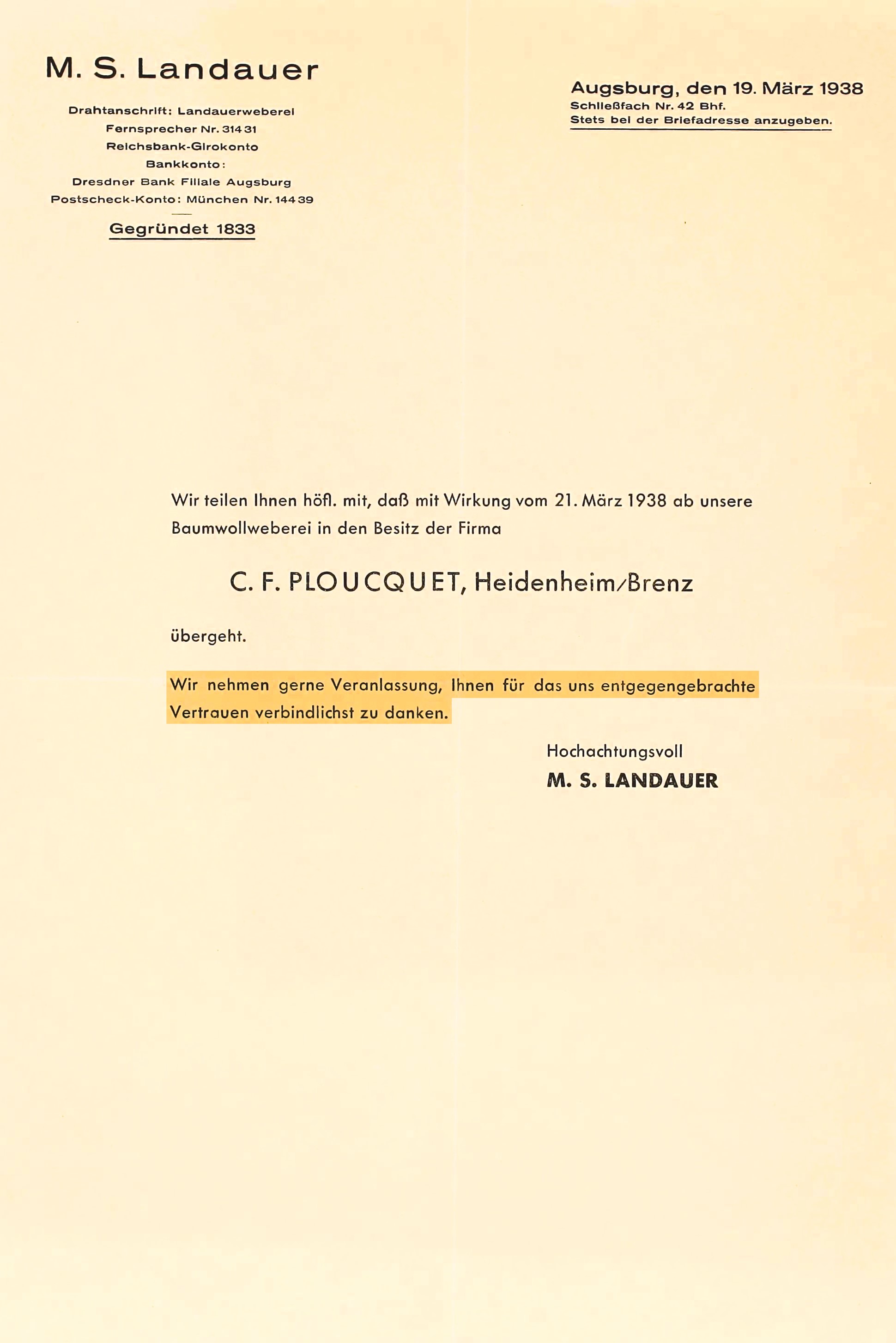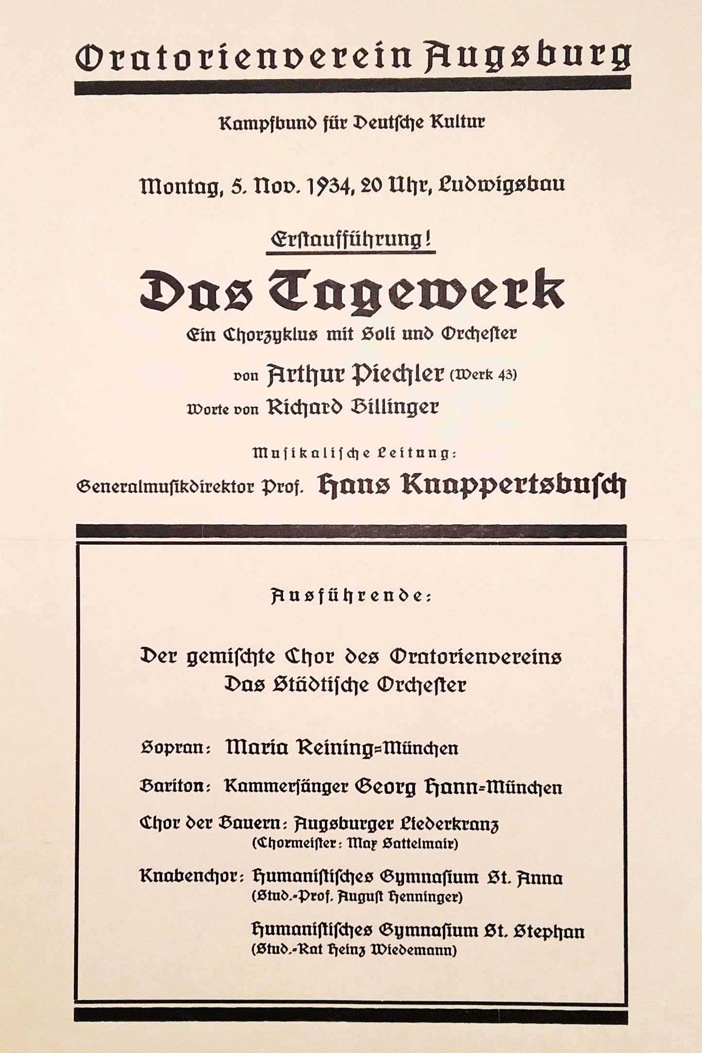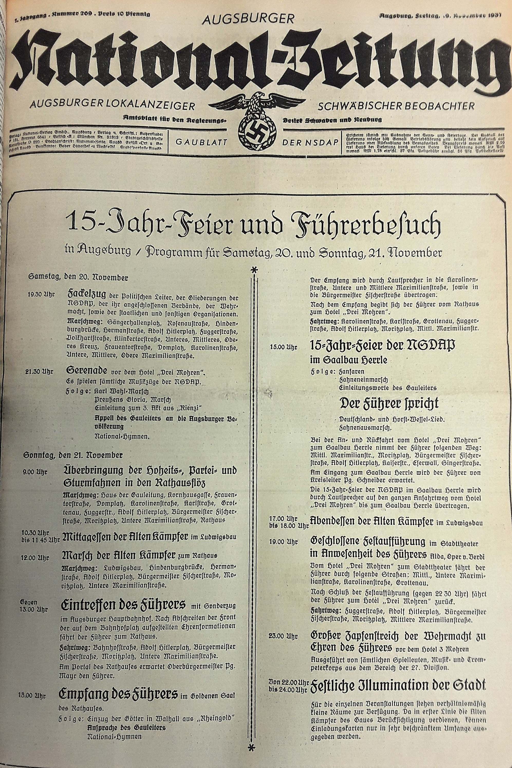Die neuen Machthaber in Augsburg zeigen nicht den judenfeindlichen Fanatismus, wie ihn ein Julius Streicher in Nürnberg praktiziert, doch schon ein Jahr nach der Reichstagswahl wird der Augsburger Judenanzeiger aufgelegt, eine Auflistung nicht-arischer Firmen. Gauleiter Karl Wahl droht "allen Parteigenossen, die sich dem Boykott nicht anschließen, mit dem Ausschluß aus der NSDAP".