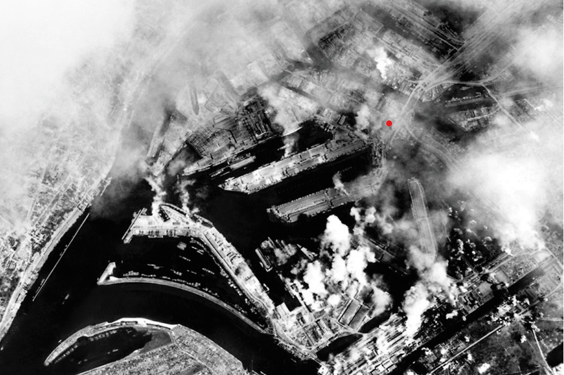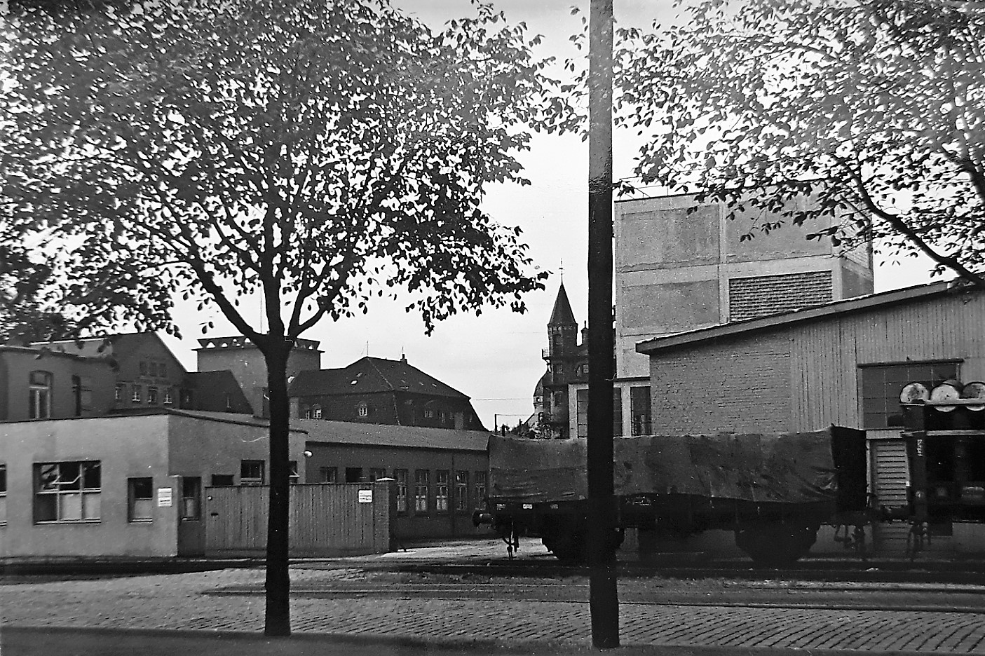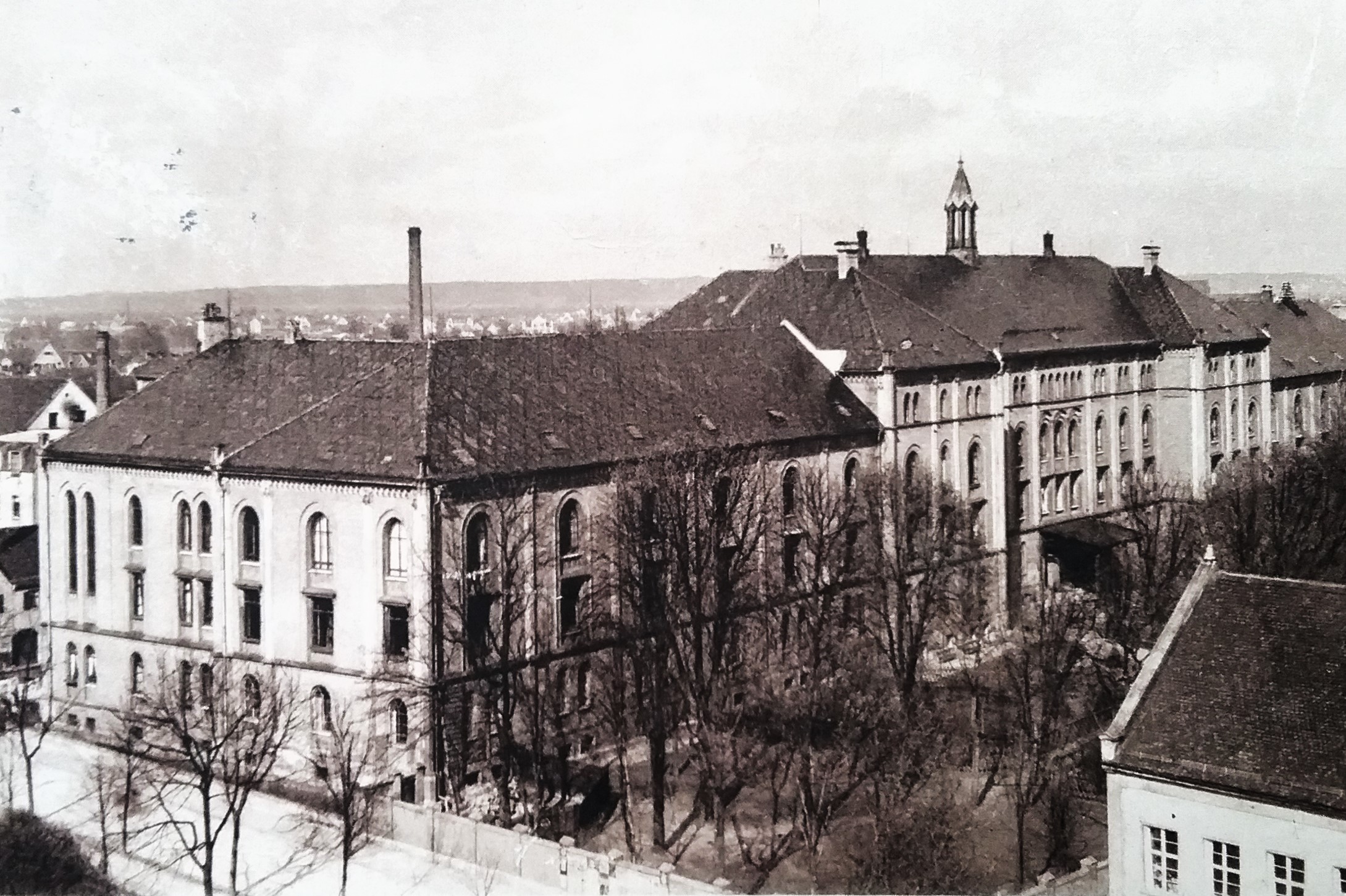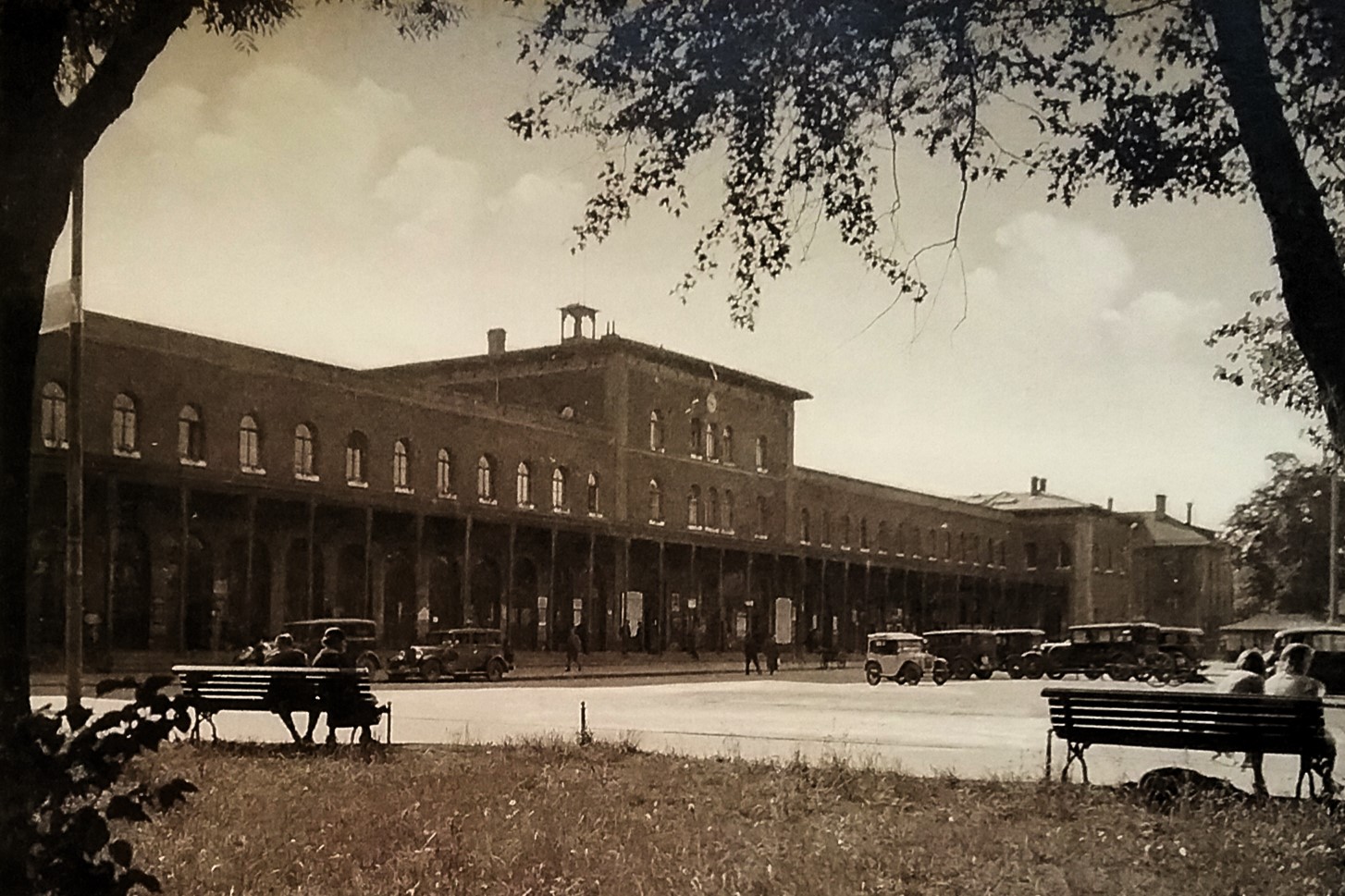 Stark beschädigt: Augsburger Bahnhofsgelände aus Blickrichtung Gögginger Brücke - 15. Januar 1945 (Deininger: "Augsburg - Portrait einer Fliegerstadt", S.92 - 1995)