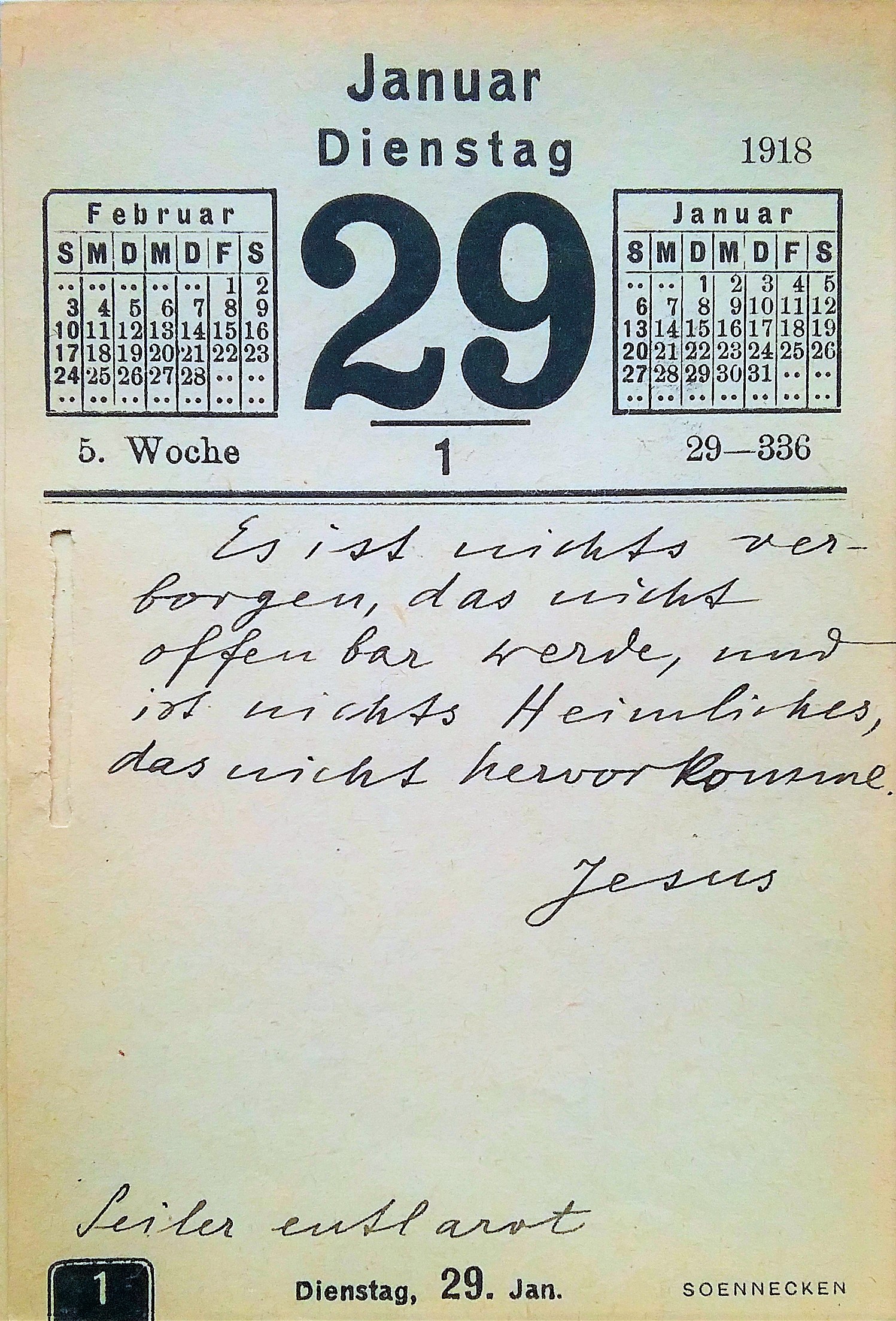 "... - und habe 3 mal bei den Franzosen und Belgiern, - und 4 mal bei den Schwarz/Roten für mein Deutschtum im Gefängnis gesessen, und darin 2 mal einen Hungerstreik durchgemacht, - und dadurch zu arg mitgenommen, um mit der bei Euch nötigen Spannkraft im Ministerium wirken zu können;- und ich habe mir auf einem Stück Sumpf und Heide, dem 'Mückenloch' meine Siedlung 'Heilgrund' geschaffen,- mitten im Walde! - Die kann ich nicht vertauschen mit Berlin. Es sei denn, Ihr hättet mich da dringend nötig! -- Ich dachte an eine Verwendung im Reiche, hier und da bei besonderen Anlässen. Das kann ich noch, und will ich auch gern.- Herr Minister Dr. Göbbels wird sich meiner Fähigkeiten vielleicht noch erinnern, wenn er gefragt wird,- falls er dieses Schreiben nicht zu Gesicht bekommt.