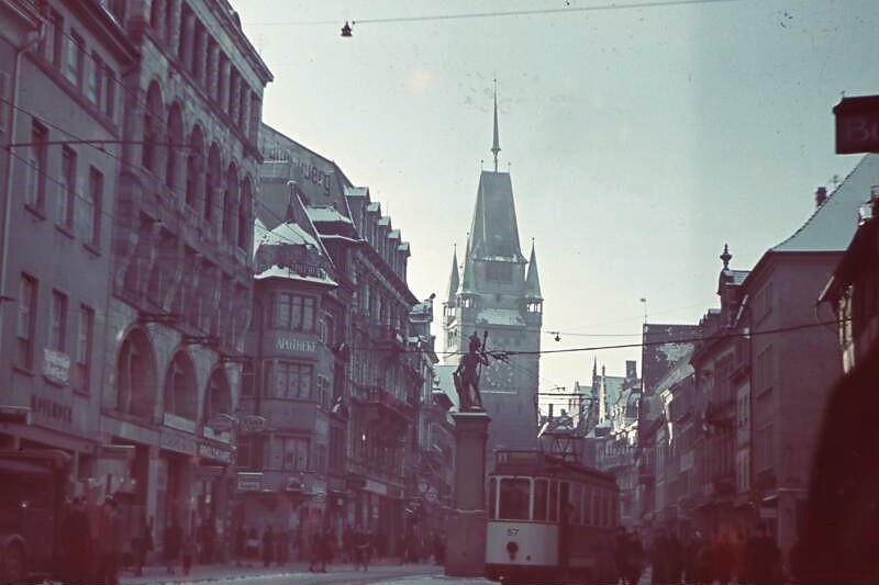 Die Reise führt sie über Heu-Hotels und Jugendherbergen von Augsburg in das rund 500 km entfernte böhmische Reichenberg in Tschechien, der Heimatstadt ihrer Mutter Helene Grandel, geb. Willner.