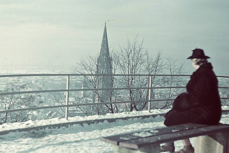 "Dorthin gelangte auch Post von der Gestapo an mich. Es war ein Befehl: 'Ihr Mann ist flüchtig; nennen Sie sofort seinen Aufenthaltsort!' Zu der Zeit pendelte er mit Fahrrad zwischen Augsburg bzw. Hirschegg und Füssen, wo sich seine Eltern und die Schwester aufhielten, hin und her. Niemand ahnte, wie gefährdet wir waren. Und dann fuhren wir (-am 8. März 1945-) mit dem letzten Lastauto (-vor der Sperrung wegen extremer Schneelage im Walsertal-) nach Immenstadt zur Entbindung (-von Christoph B.-) ... Christophs Vater wurde immer noch von der Gestapo gesucht, als die Befreiung kam."