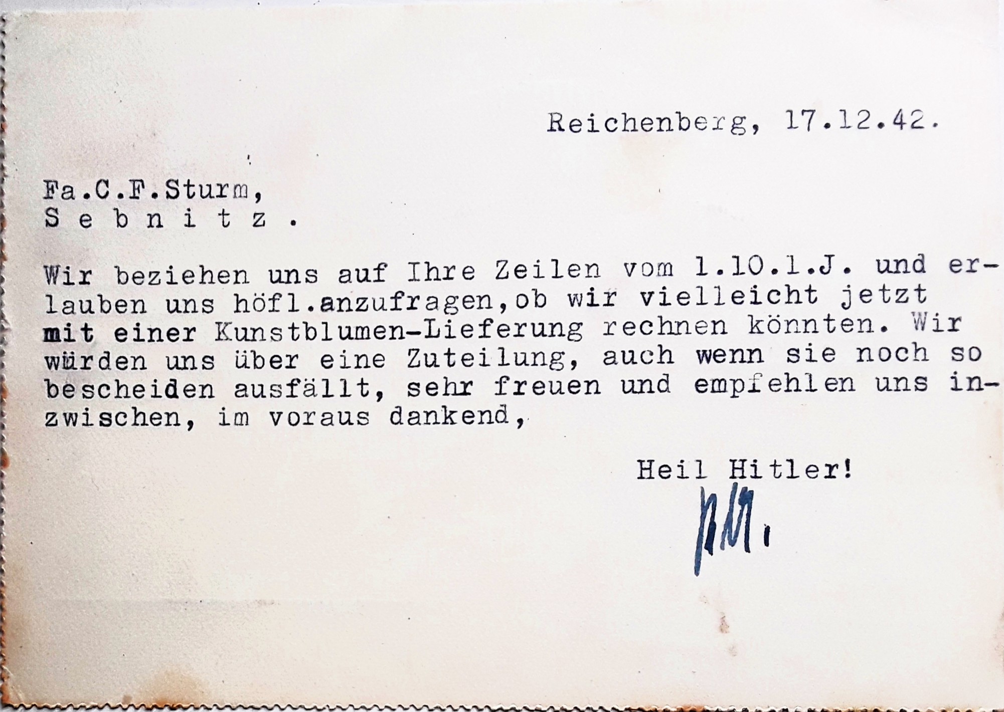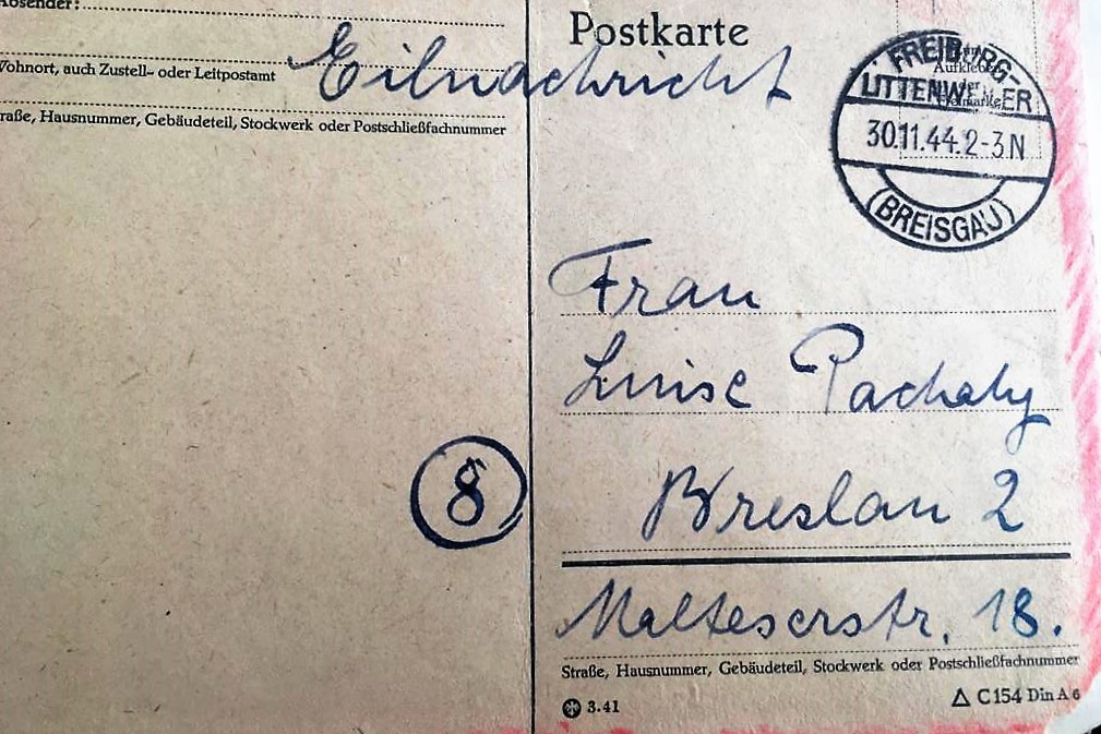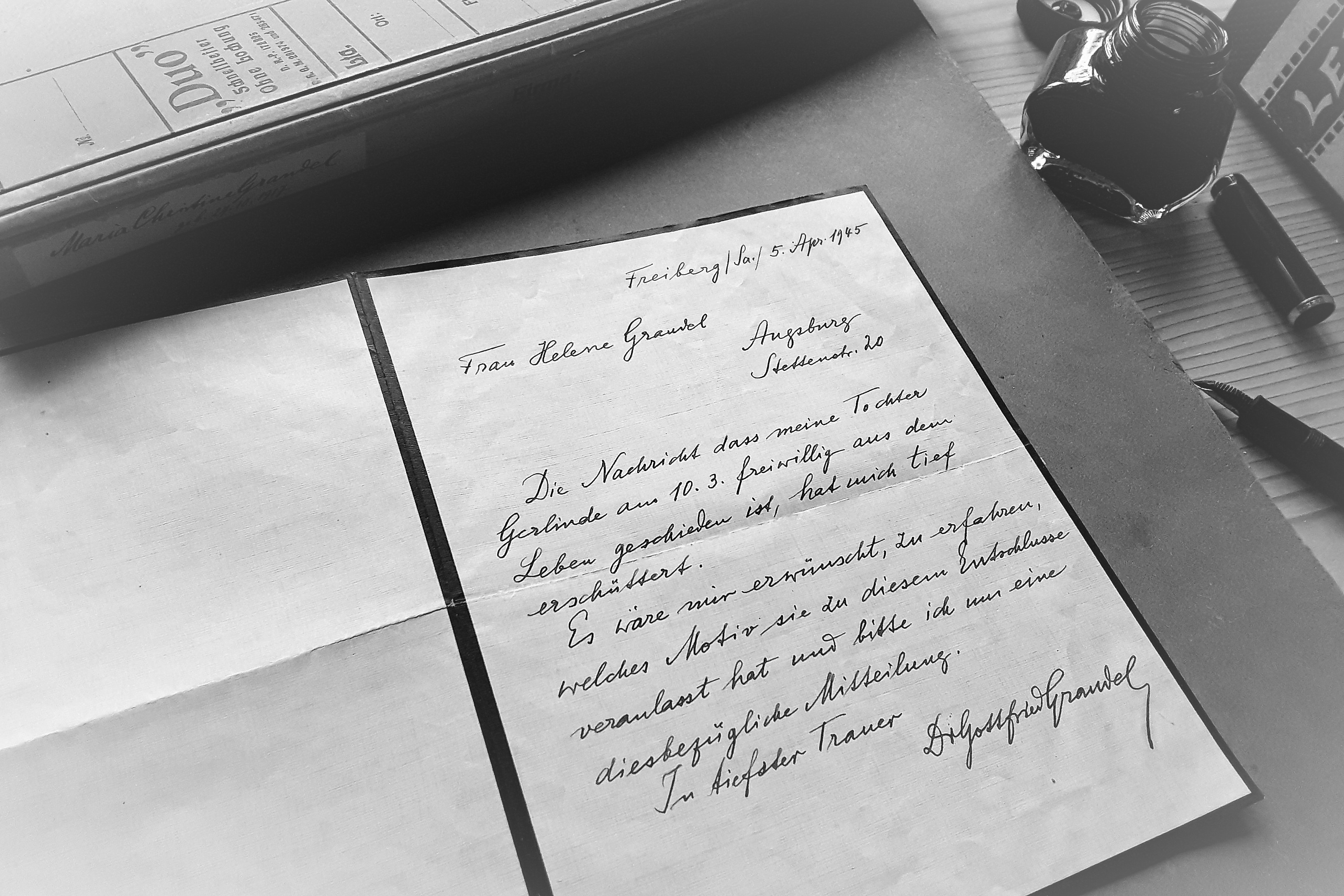 Freiberg in Sachsen: Antwort auf die Todesnachricht aus Augsburg - 5. April 1945 (Fotografie im Privatbesitz)