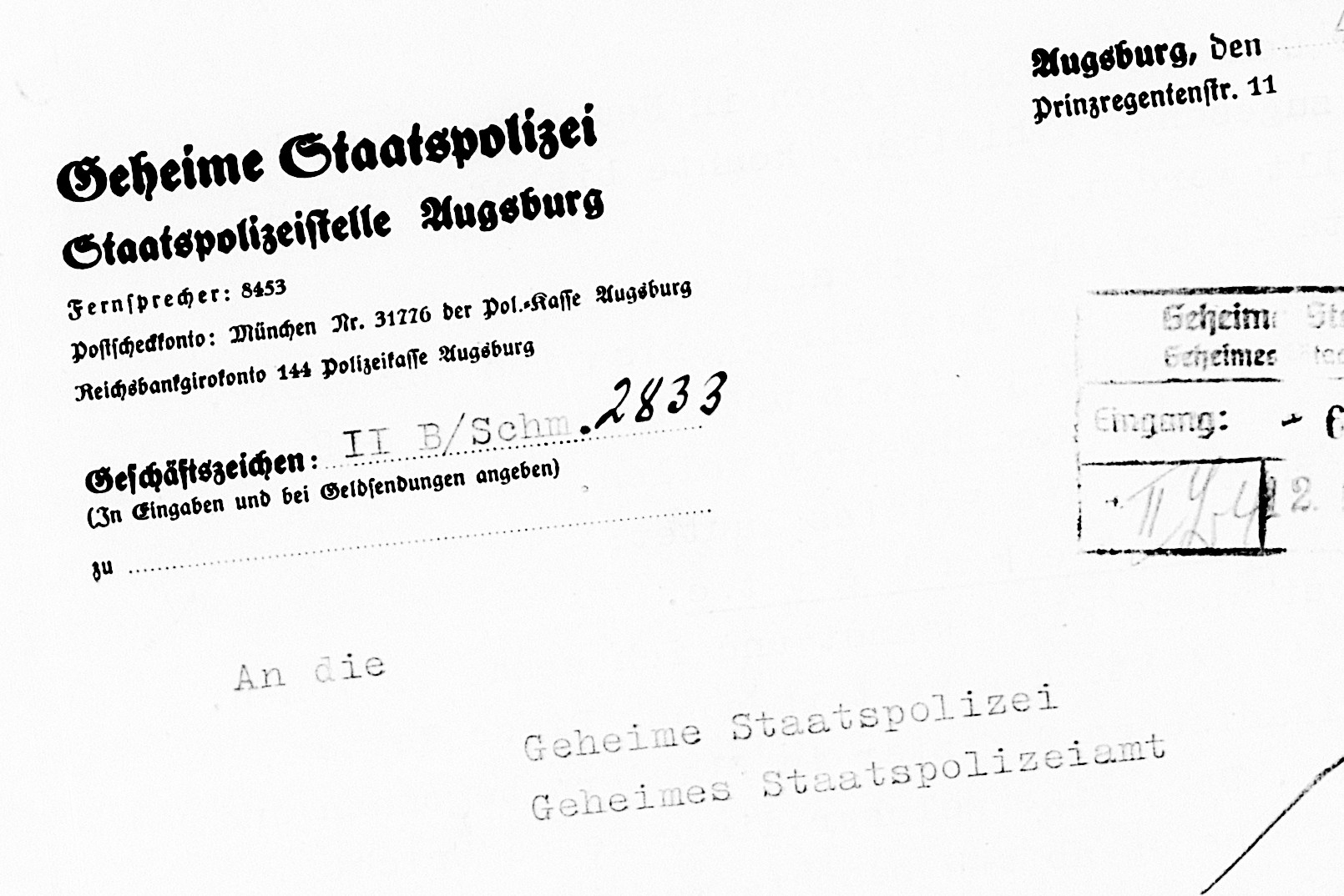 Eine zunehmend radikalisierte Behörden-Maschinerie entrechtet systematisch und mit hoher Dynamik sowohl die Gegner des Regimes, als auch die Mitbürger jüdischen Glaubens. In Augsburg bildet die Stadtverwaltung eine der tragenden Eckpfeiler der nationalsozialistischen Herrschaft.