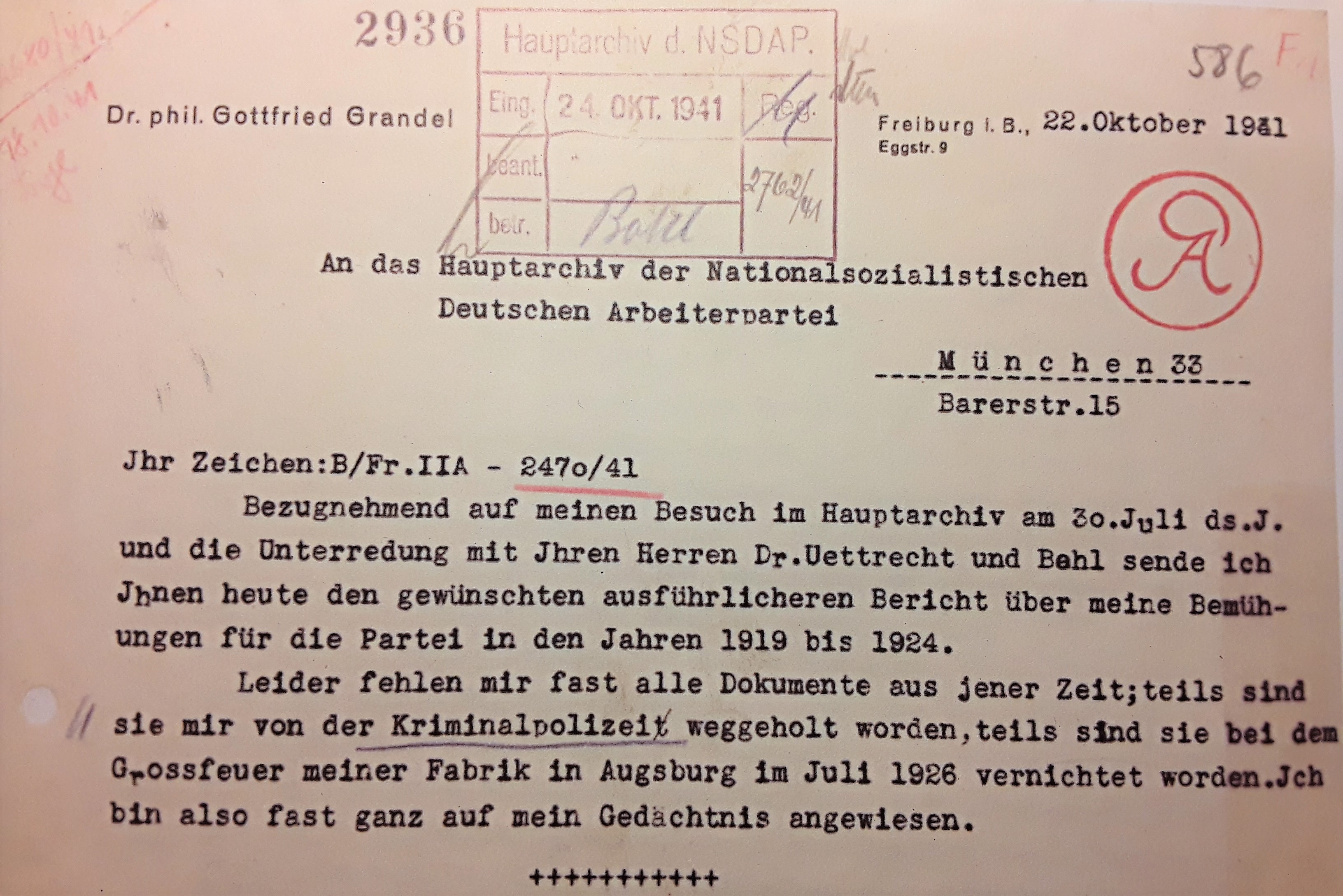 "Als 1933 in Hamburg auf dem schönen Rathause die Hakenkreuzflagge hochging, war ich zugegen und freute mich." (BArch Berlin: NS26/515, S.594/Bl.9 - Dr. Grandel an das NSDAP-Hauptarchiv v. 22.10.1941)