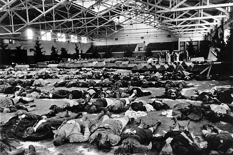 "American forces, tanks wheeled up to every building from which shots had been fired and levelled them, eventually leaving the entire town in ruins. In Augsburg, where a sniper fired a carbine at an American tank in the surrendered city, the tank turret swerved and the cannon fired, although it missed the structure covering the sniper and instead hit the house next door, burying in rubble eight civilians standing in the front yard.(...)