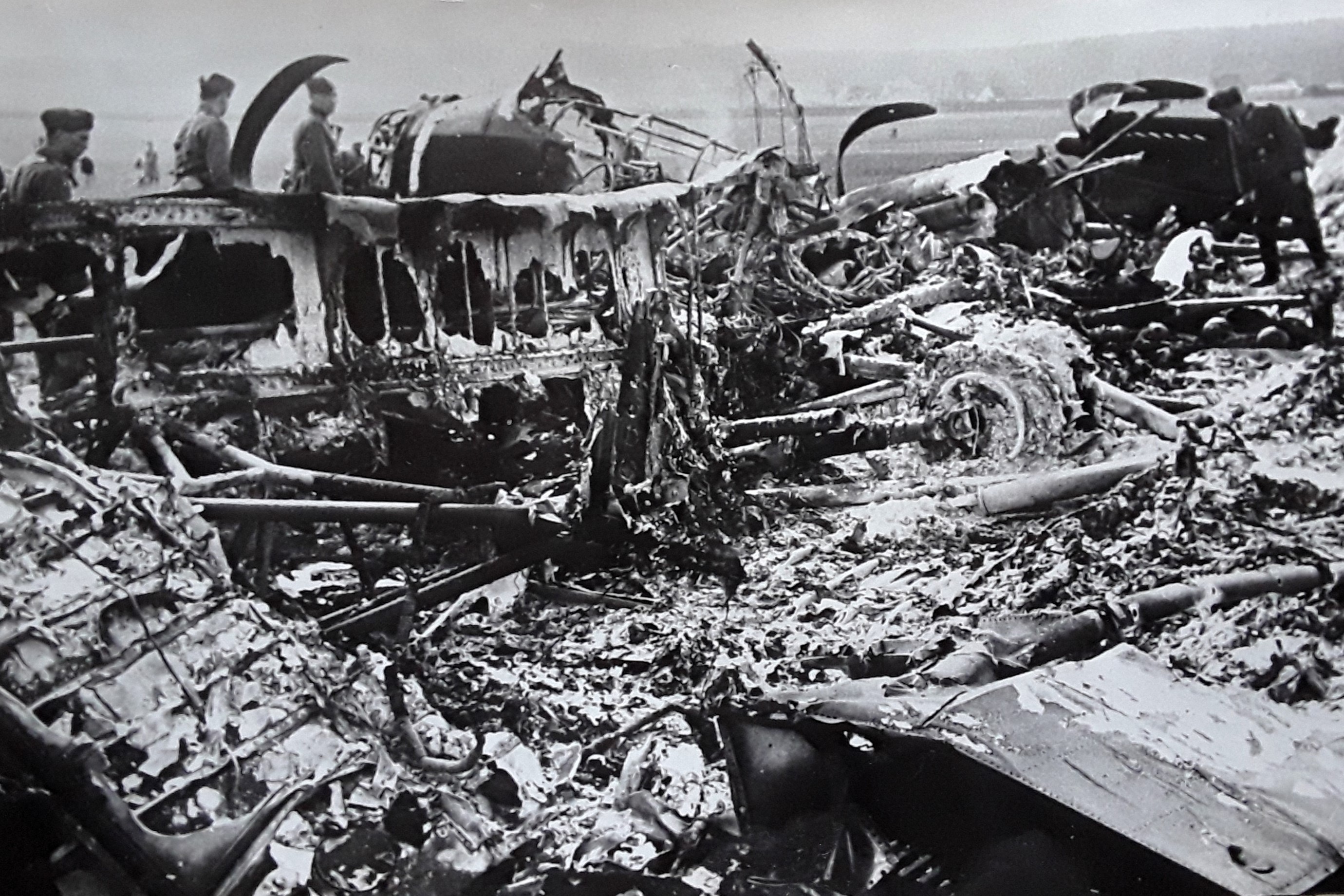 Der näherkommende Fliegerlärm gegen 15 Uhr an diesem 24. April kündigte für Bächingen jedoch die größte Katastrophe seiner neueren Geschichte an. Die amerikanischen Kampfflieger eröffneten das Feuer aus ihren Bordwaffen und setzten so in einer Vielzahl von Überflügen viele Bauernhöfe in Brand. Als der Luftangriff nach etwa 20 Minuten endete, brannte es überall im Ort. Vieh lief schreiend durch die Straßen, so es aus den brennenden Ställen noch hatte fliehen können. Die Feuerwehr war durch diese Lage völlig überfordert - auch die heutige wäre es, darauf ist niemand eingerichtet. Viele Feuerwehrmänner standen selbst im Kriegseinsatz oder waren gefallen, die vorhandene Ausrüstung war spartanisch. Motorisierte Pumpen standen nicht zur Verfügung. Zudem hatte sich die Hauptwasserleitung unter einer der Brenzbrücken befunden, die gesprengt worden waren. Eine Wasserversorgung über Hydranten war somit nicht mehr möglich. Die Bächinger versuchten, die überall brennenden Feuer mit Erde und Jauche zu löschen, was mehr schlecht als recht gelang. Die traurige Bilanz dieses Tages lautete wie folgt: Der Angriff forderte vier Todesopfer unter den Einwohnern, davon ein Kleinkind. 32 Gebäude brannten bis auf die Grundmauern nieder." (ffw-baechingen.de: "Vier Tote, 32 abgebrannte Gebäude in Bächingen" - 2015)