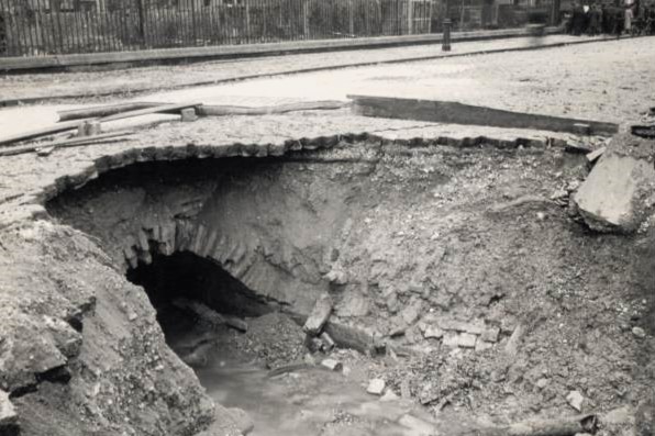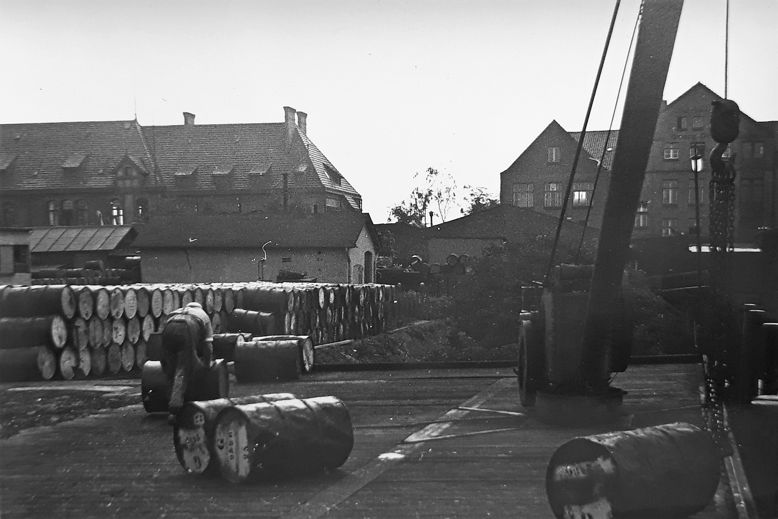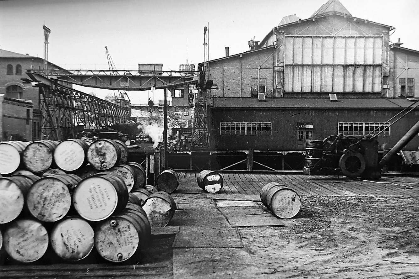 "In der Chemischen Fabrik ,Deutsche Oelfabrik Dr. Grandel & Co' am Ellerholzdamm 50 drangen Chlorschwefeldämpfe aus einem undichten Hahn. Die Beschäftigen der umliegenden Firmen mußten evakuiert werden." (Staatsarchiv Hamburg: 720-1/388-00, 80341+Dia Nr.2562 / Bildagentur CONTI-PRESS, Walloch)