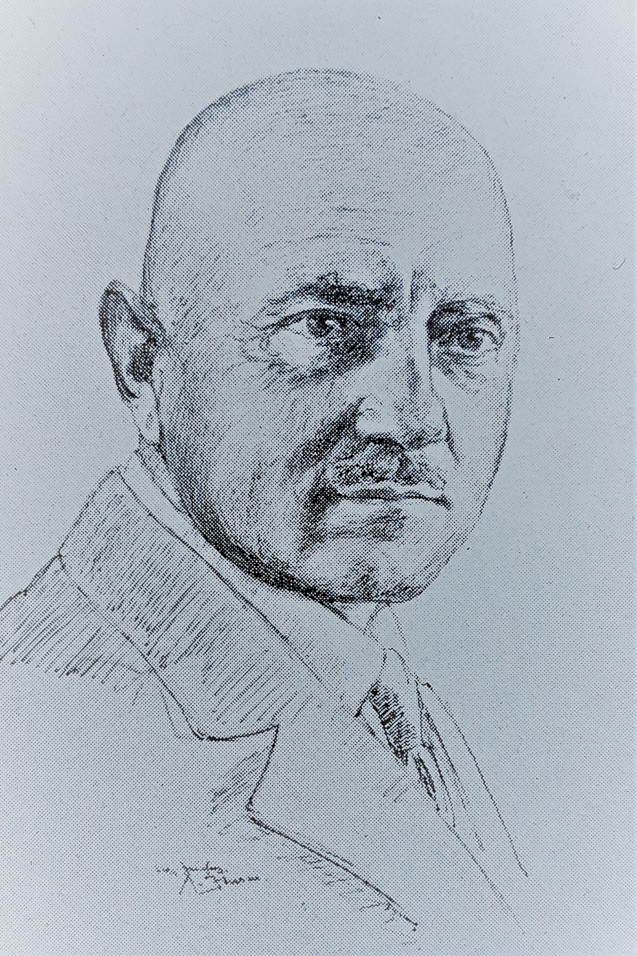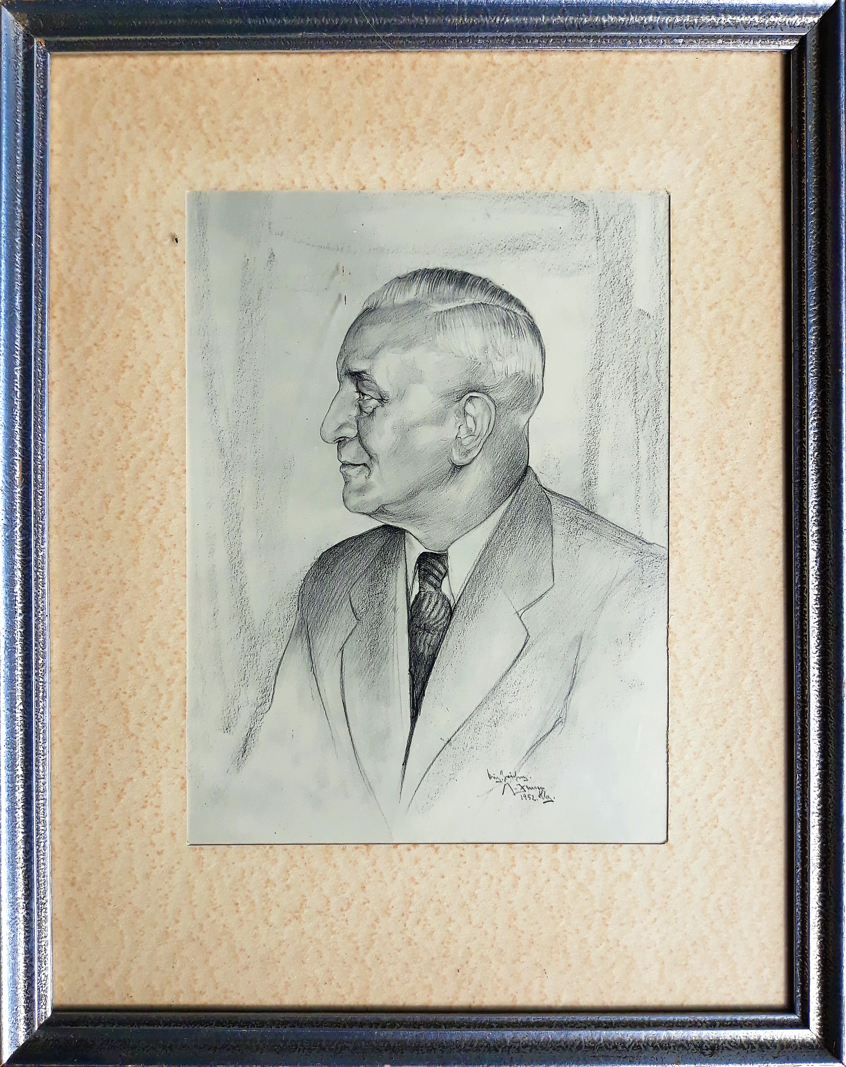 Portrait-Zeichnung des verstorbenen Seniorchefs Josef Rupp - Dezember 1952 (Original im Privatbesitz der Hamburger Enkeltochter von J. Rupp)