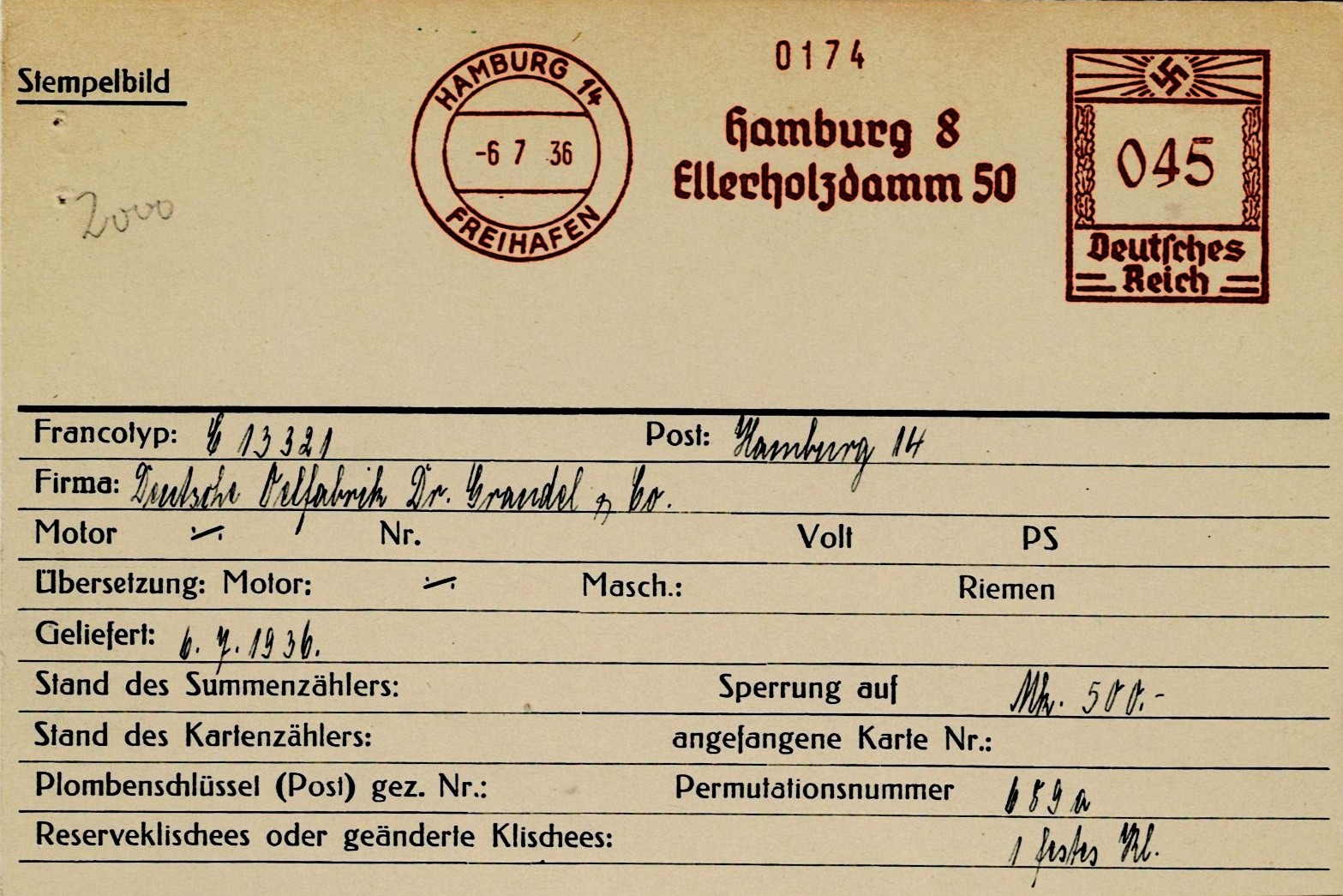 Postkennung der DOG - 1956 (Archiv-Stempelkarte im Privatbesitz)