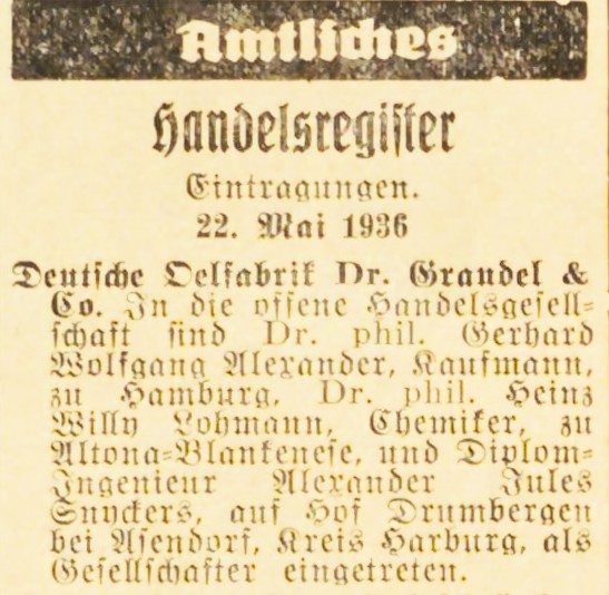 Gottfried Grandel hat sich noch kurz vor der Machtübernahme von seiner "jüdisch versippten" Familie in Augsburg losgesagt. Nach der Aufgabe seines Produktionsstandortes am Hanreibach lässt der nun in Hamburg lebende neue DOG-Firmenteilhaber seine halbjüdische Frau Helene mit vier Kindern in Augsburg zurück, zahlt ihnen nach seinem kurz darauf erfolgten Ausstieg aus der Firma als vermögender Privatier mit 70 Mark eine überschaubare monatliche Unterstützung.