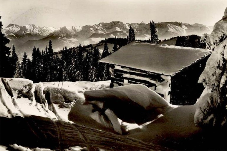 Immenstadt im verschneites Allgäu: Blick vom Horngipfel gen Osten - 1939 (Postkarte im Prtivatbesitz / Photohaus Hipp, Immenstadt)