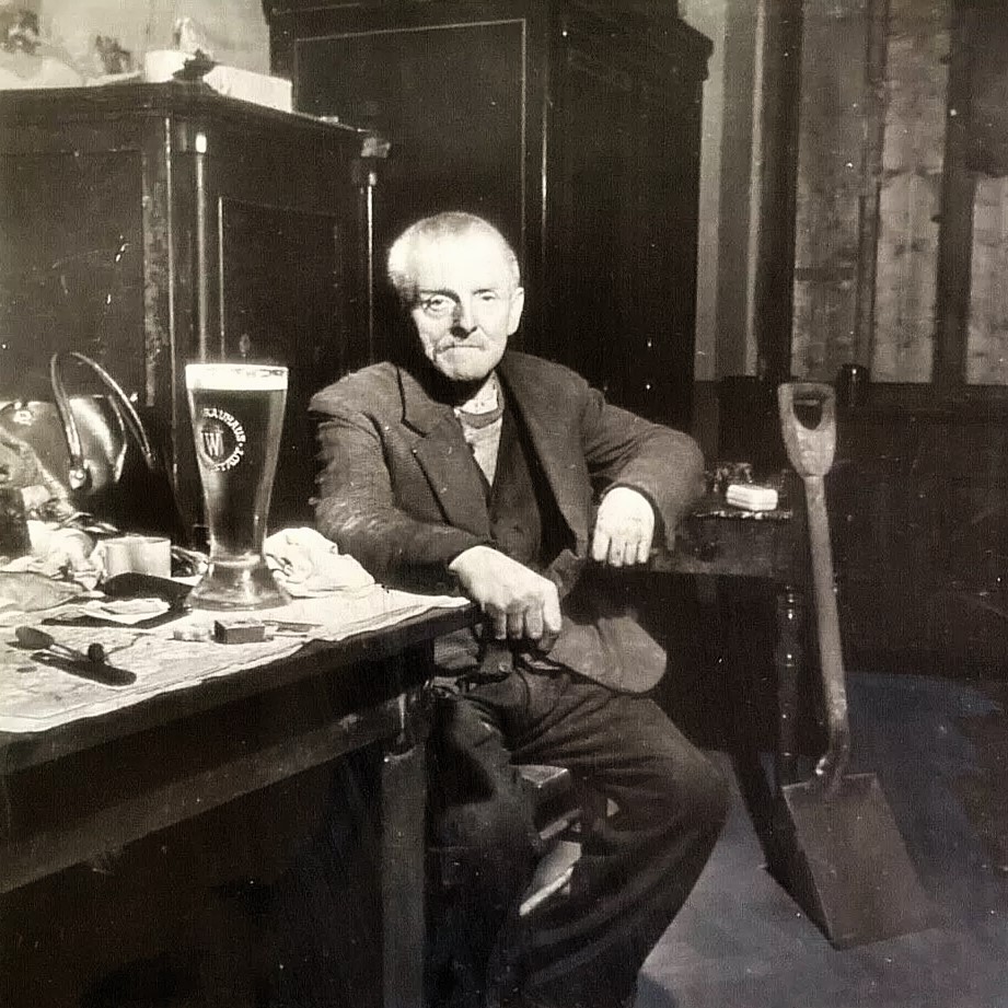 Wo alles begann: Hausmeister Wilhelm Guillon im Münchener Sterneckerbräu - Mai 1945 (Fotografie im Privatbesitz / LIFE, S.37 v. 14.5.1945)